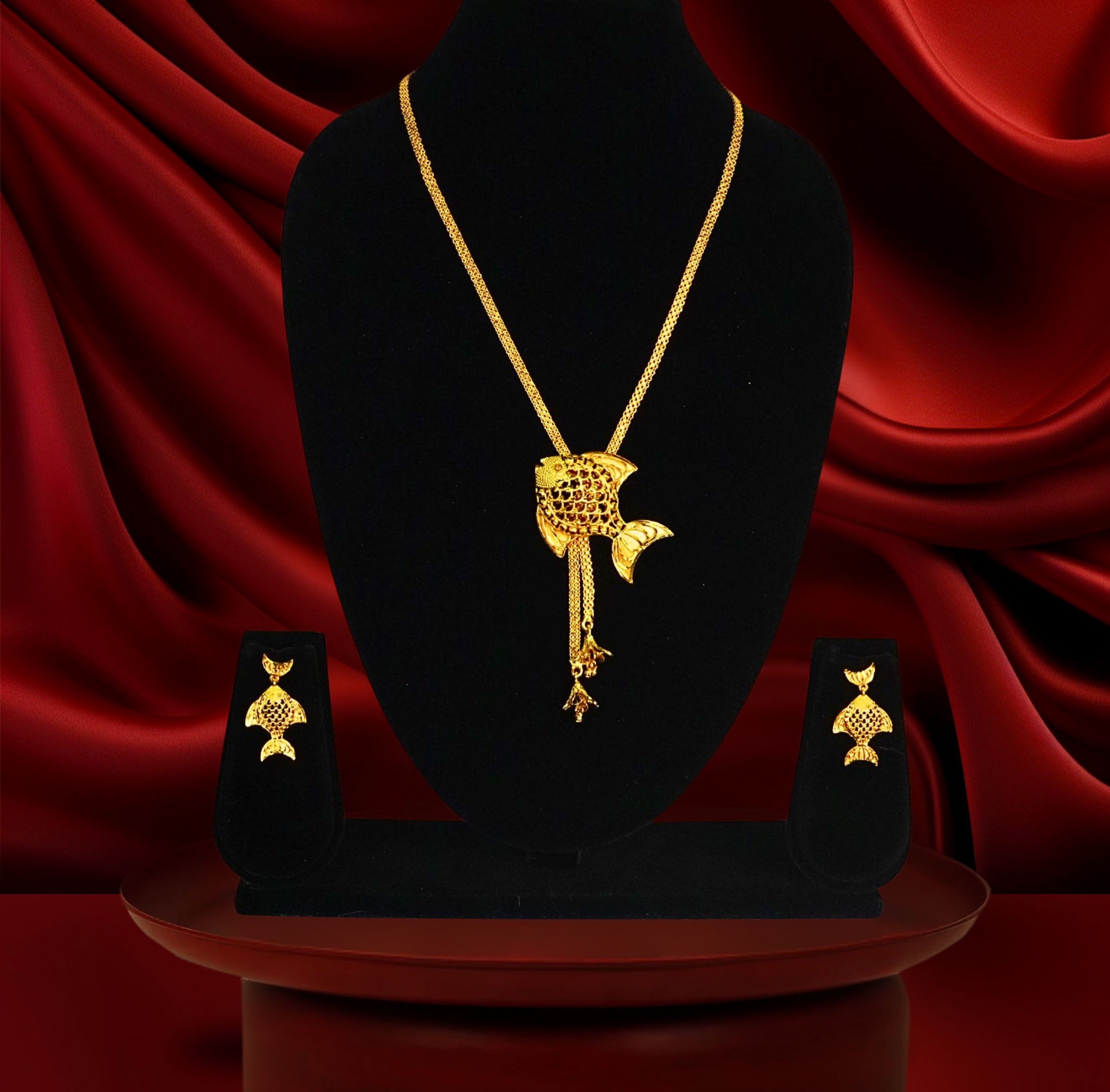 24k gold-plated fish motif tie chain – elegant long pendant set