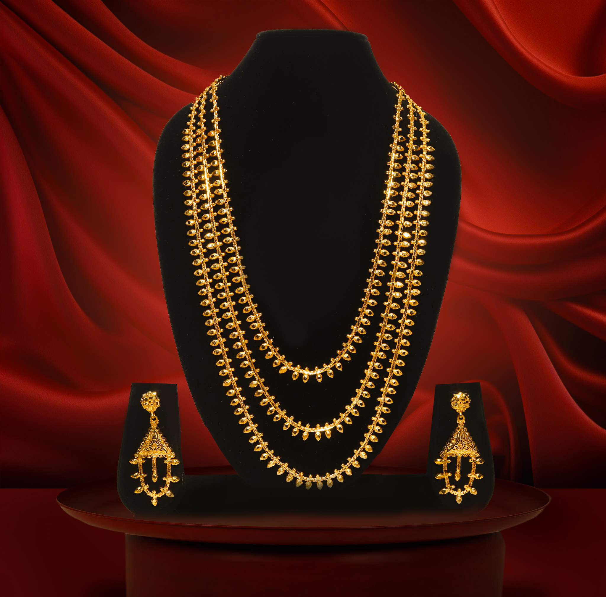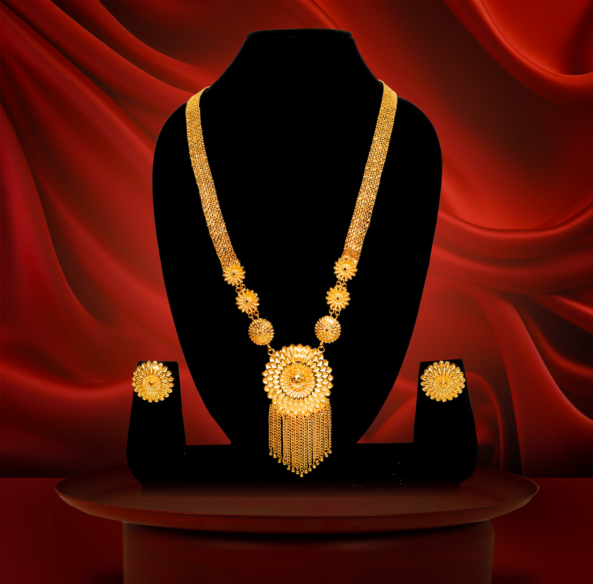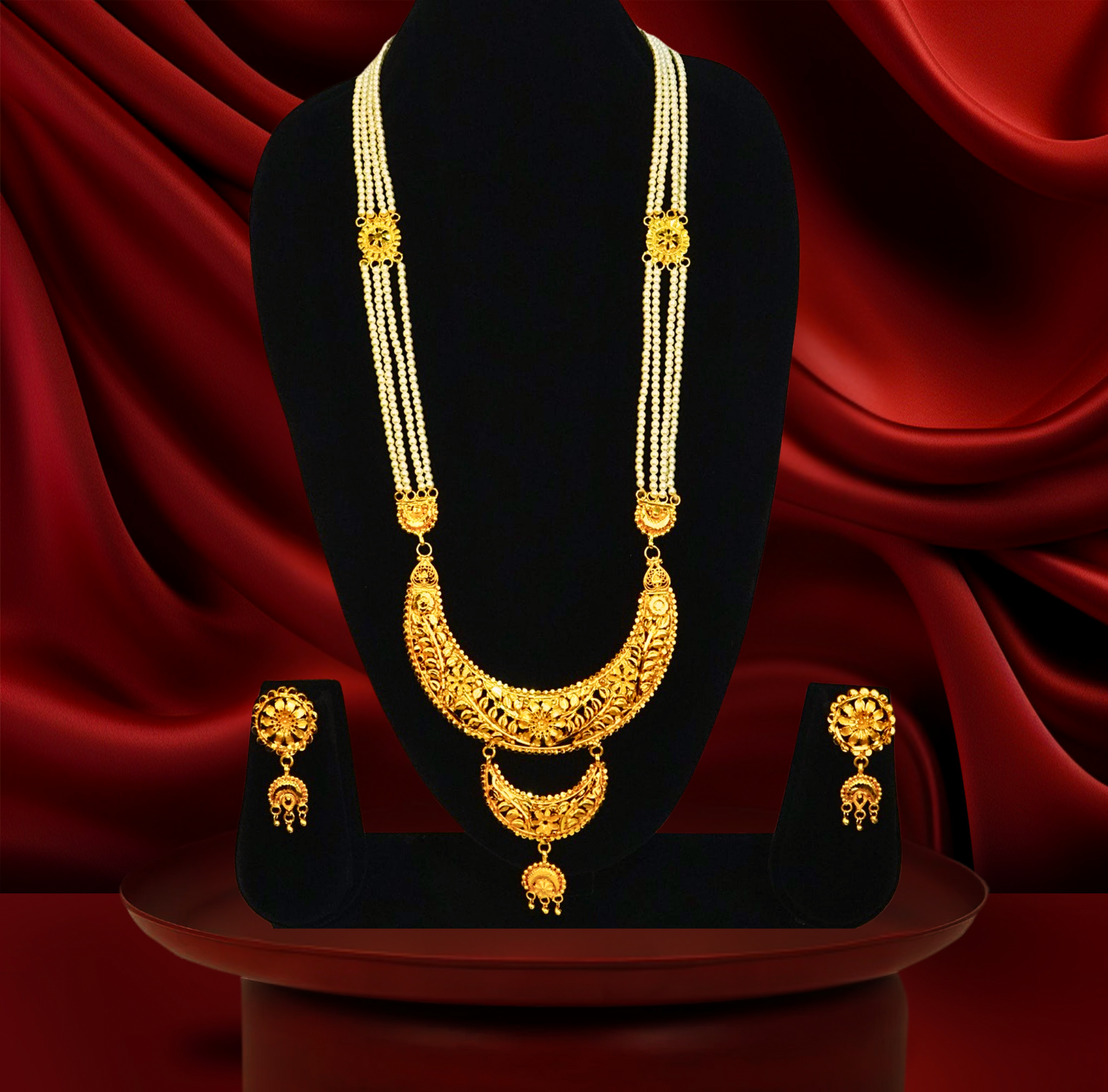 24k gold-plated traditional bengali bridal double layered pendant haar set
