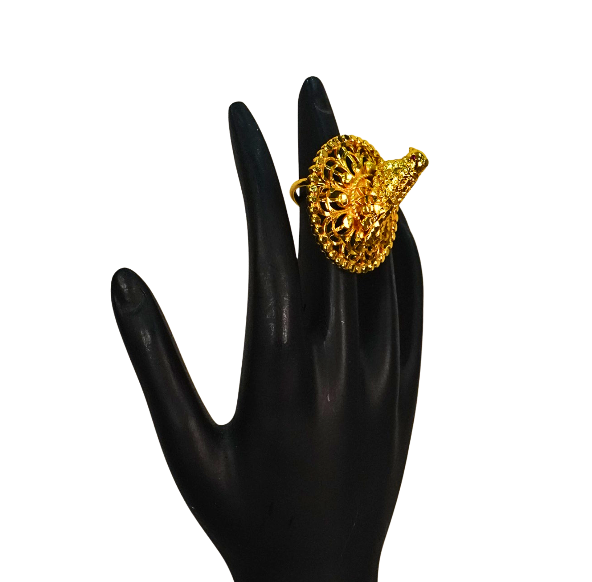 24k gold-plated - 3d peacock motif adjustable finger ring