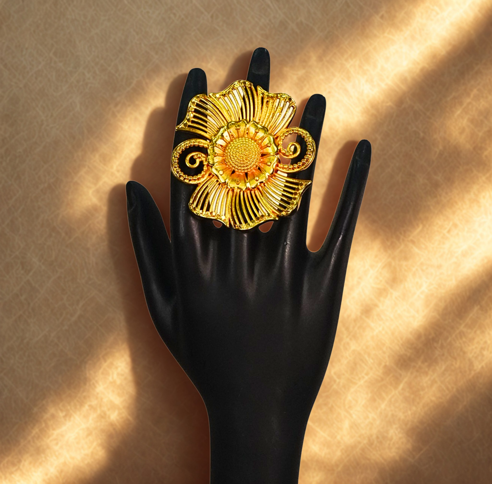 24k gold-plated - blooming sunflower statement adjustable finger ring