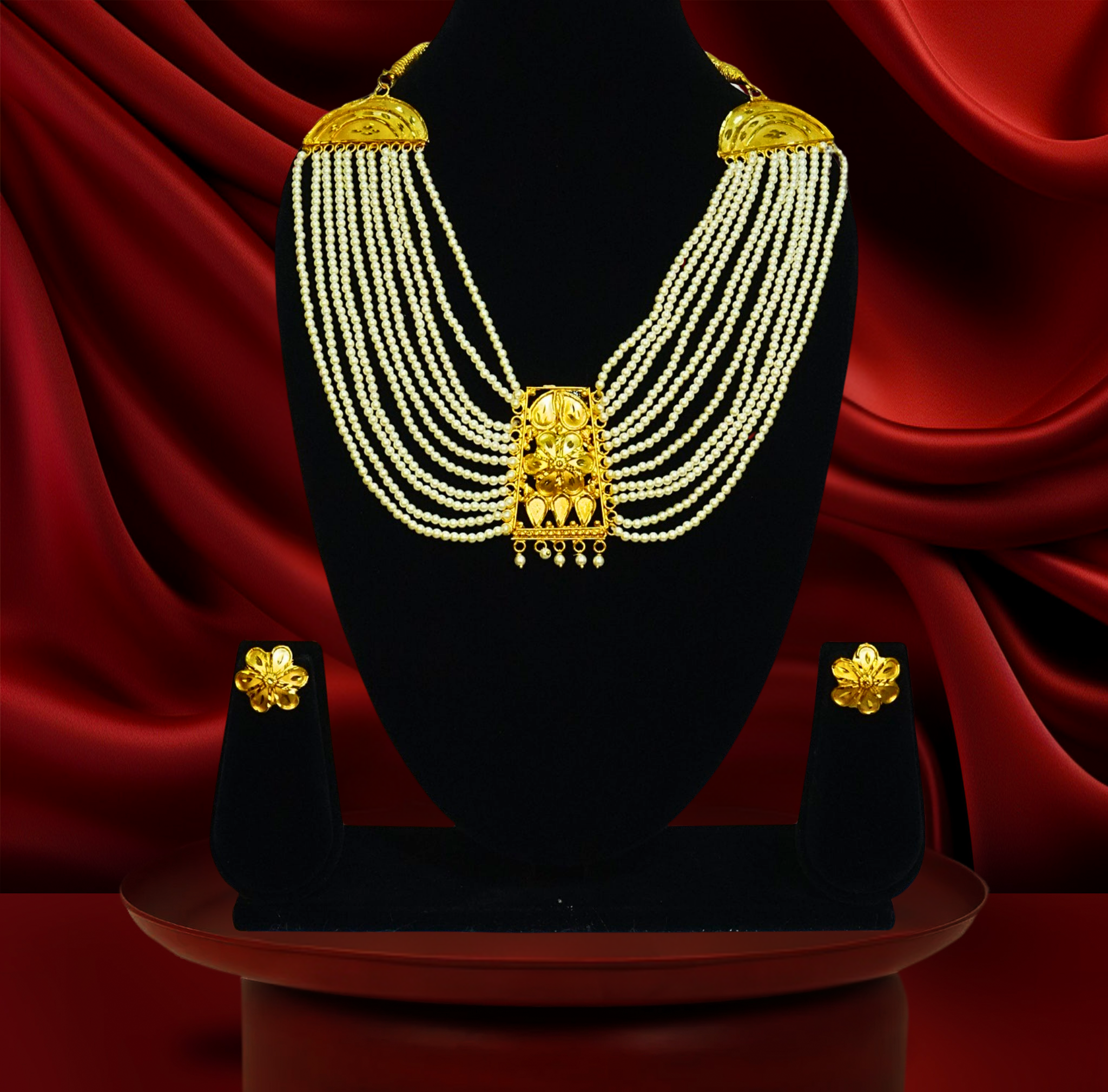 Royal rani haar- multi layer pearl with 24k gold plated pendant