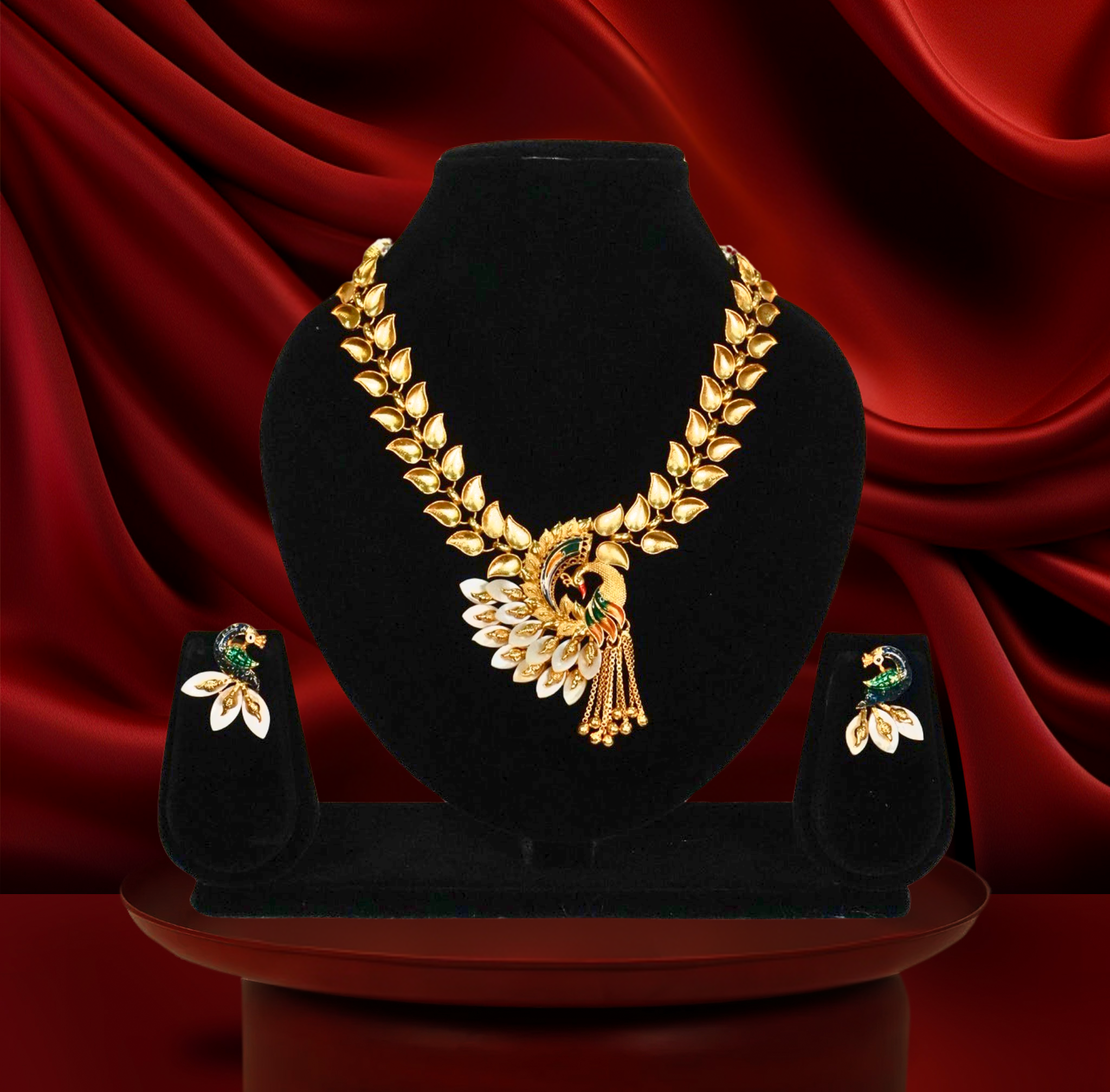 24k gold plated peacock shell necklace set – traditional ethnic jewellery for wedding & festive wear