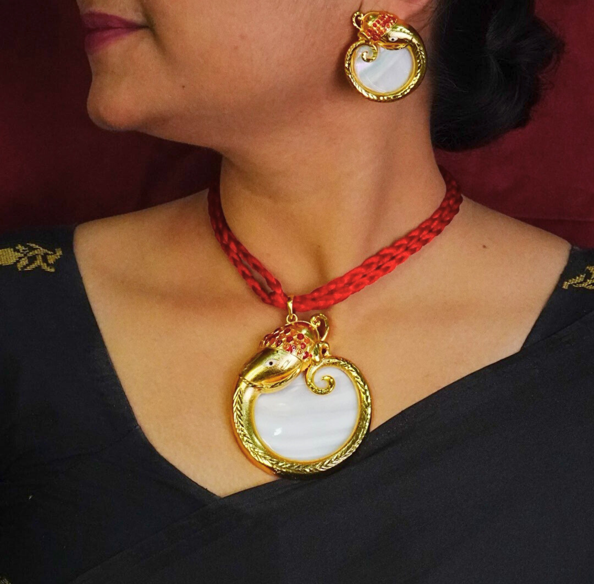 Lord ganesha motif shell pendant set – 24k gold-plated with mother-of-pearl detailing