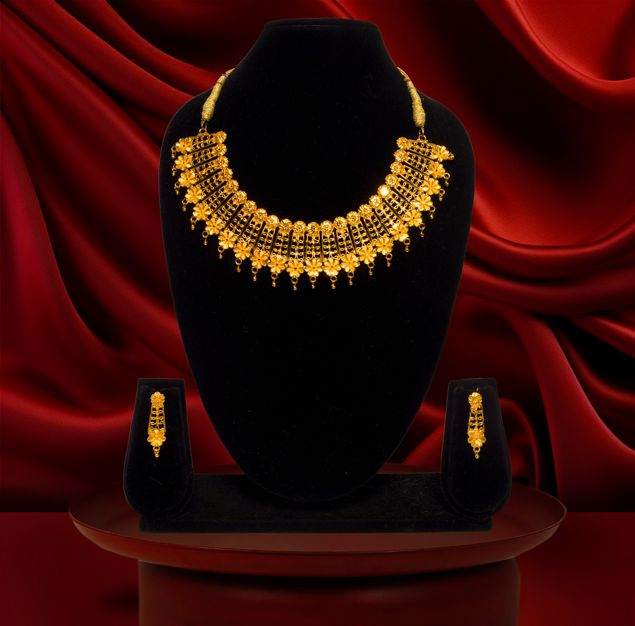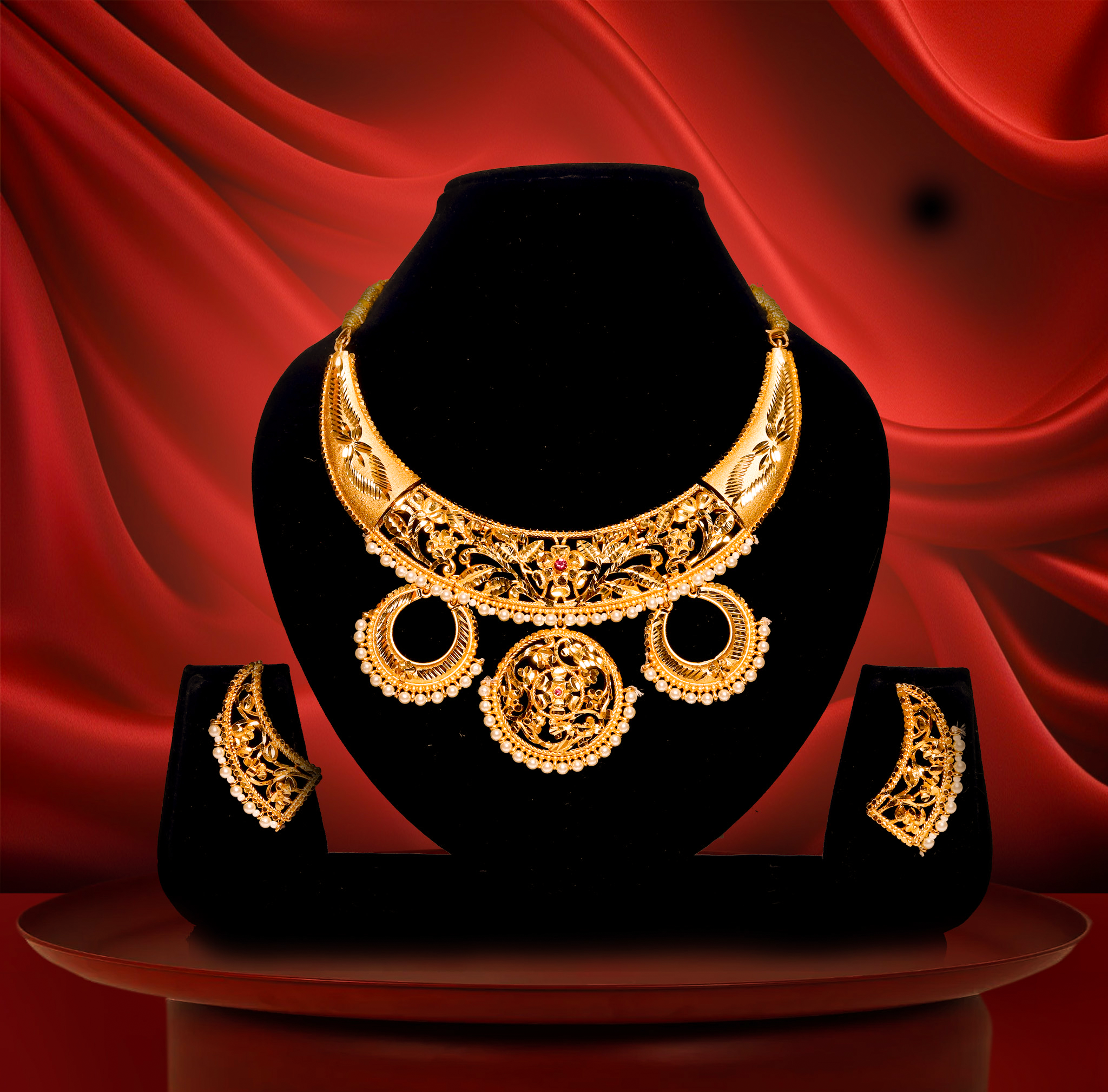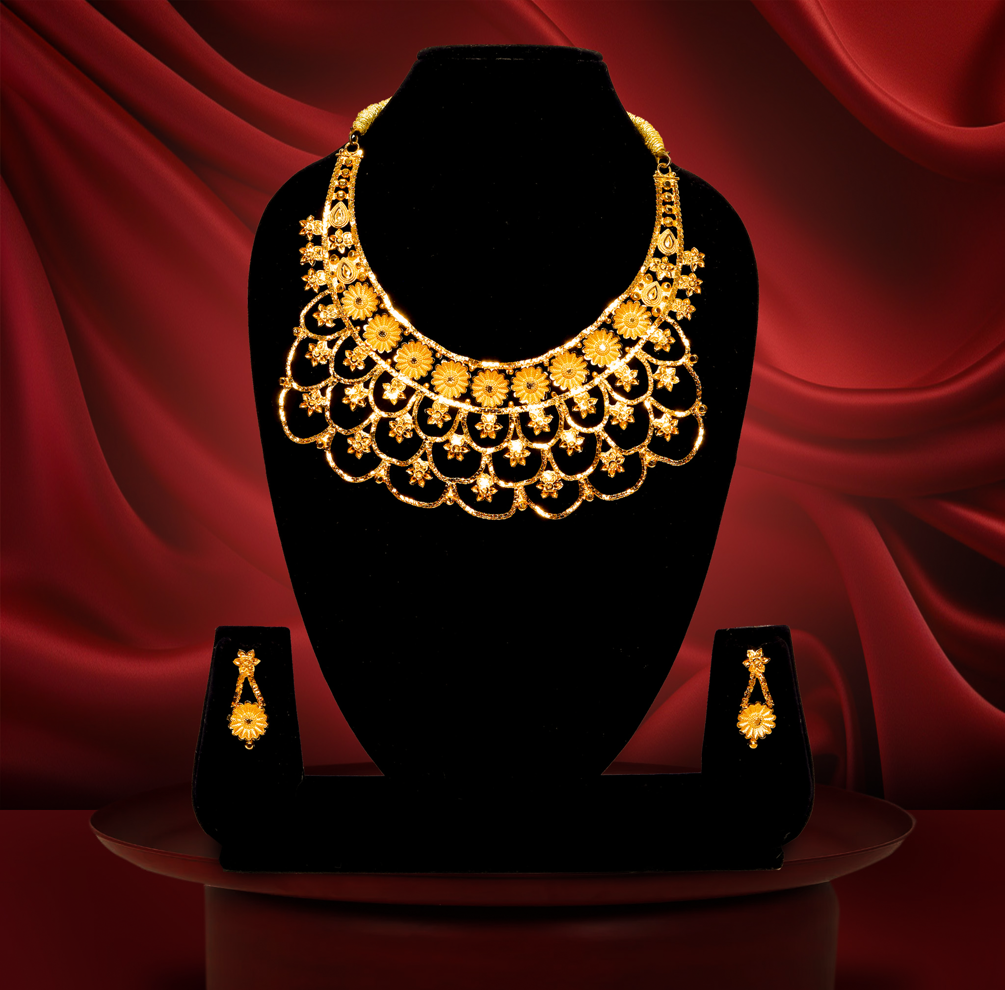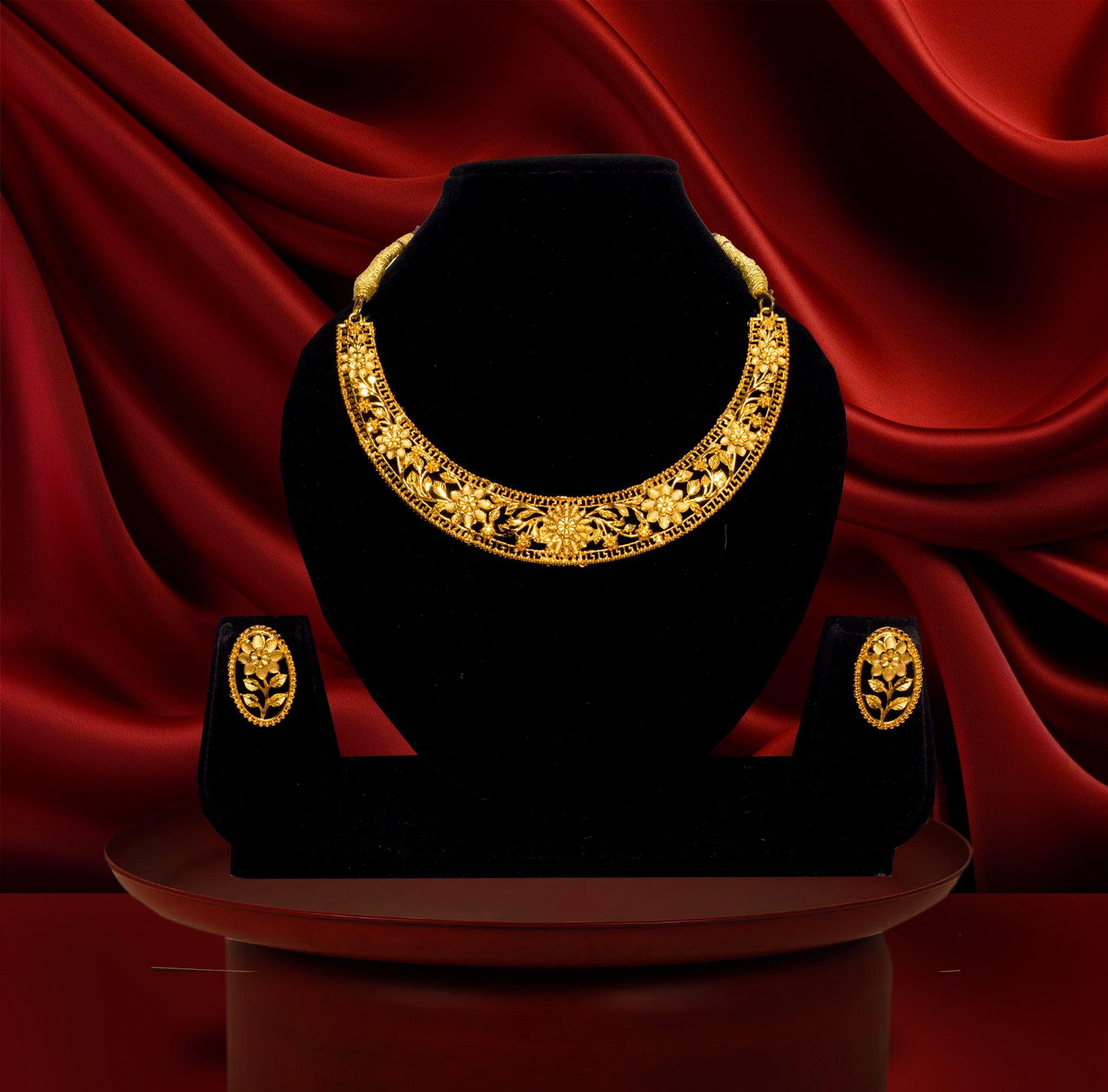 24k gold-plated traditional floral leaf choker necklace set with earrings