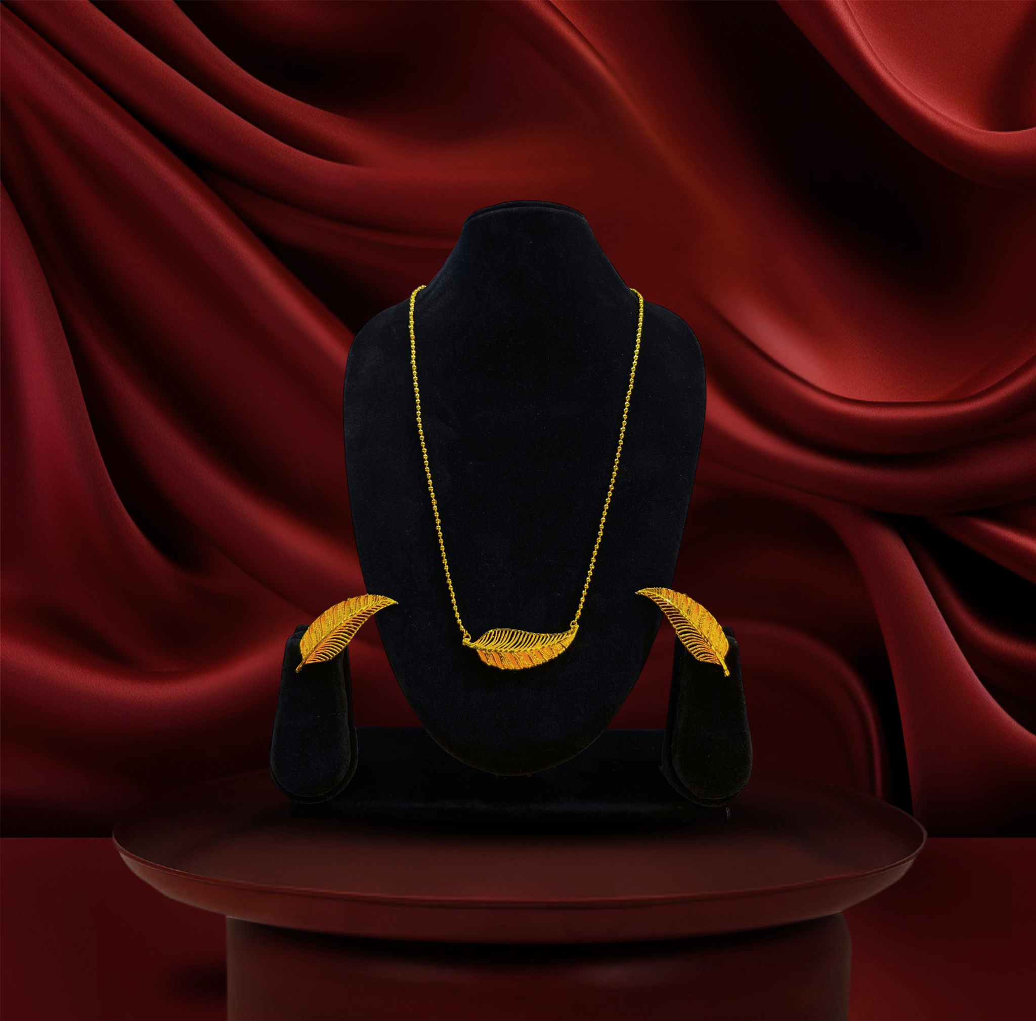 24k gold-plated - elegant leaf motif necklace set with matching statement earrings