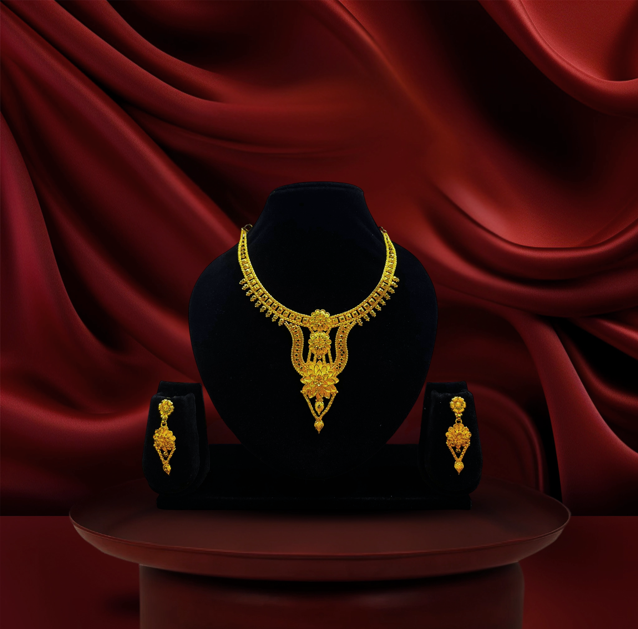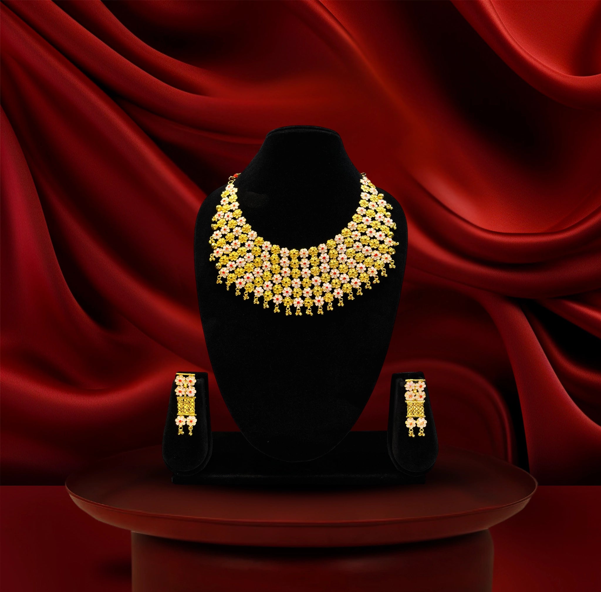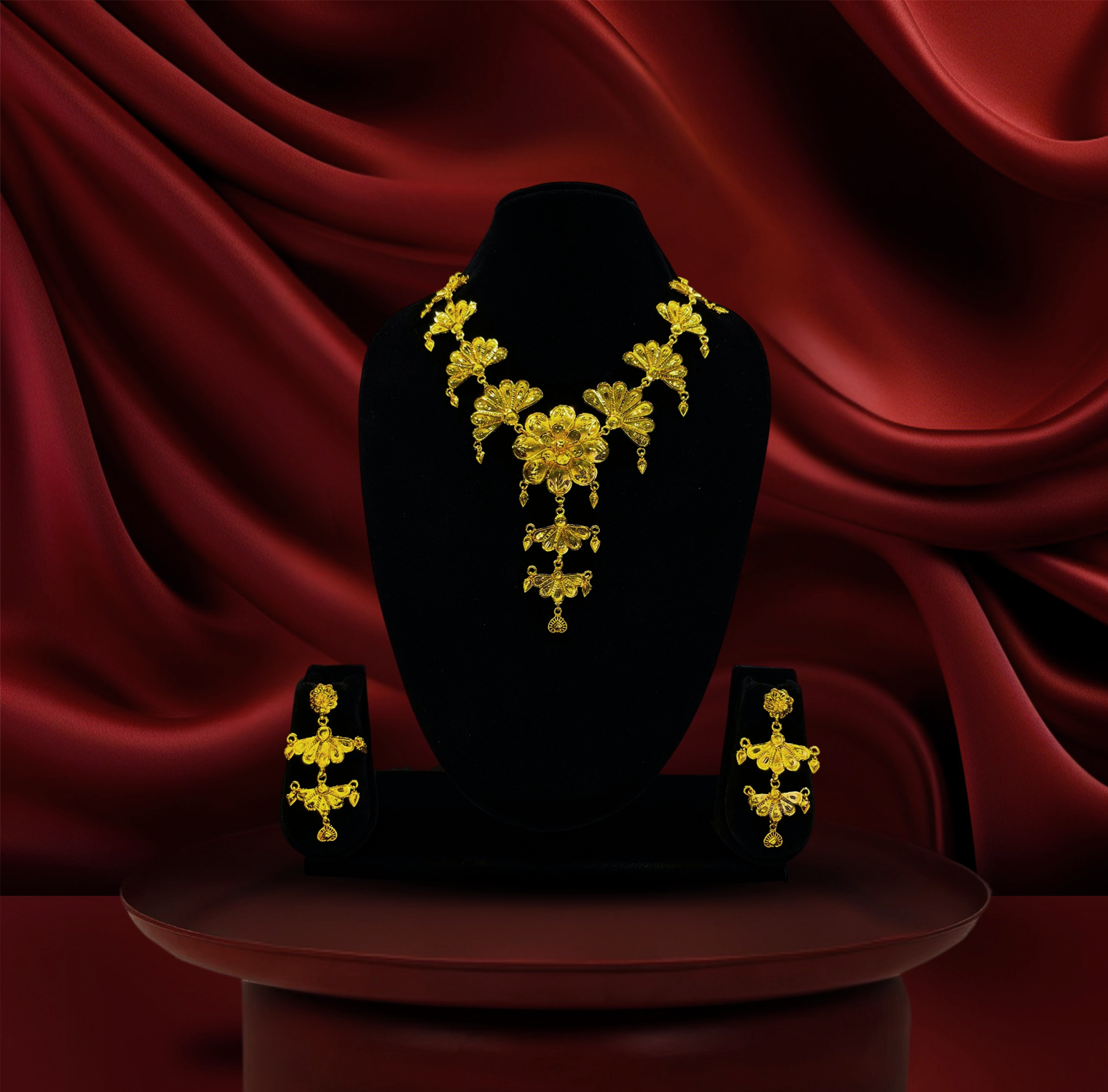 24k gold-plated bridal special premium floral necklace set with floral detailing & matching earrings (copy)