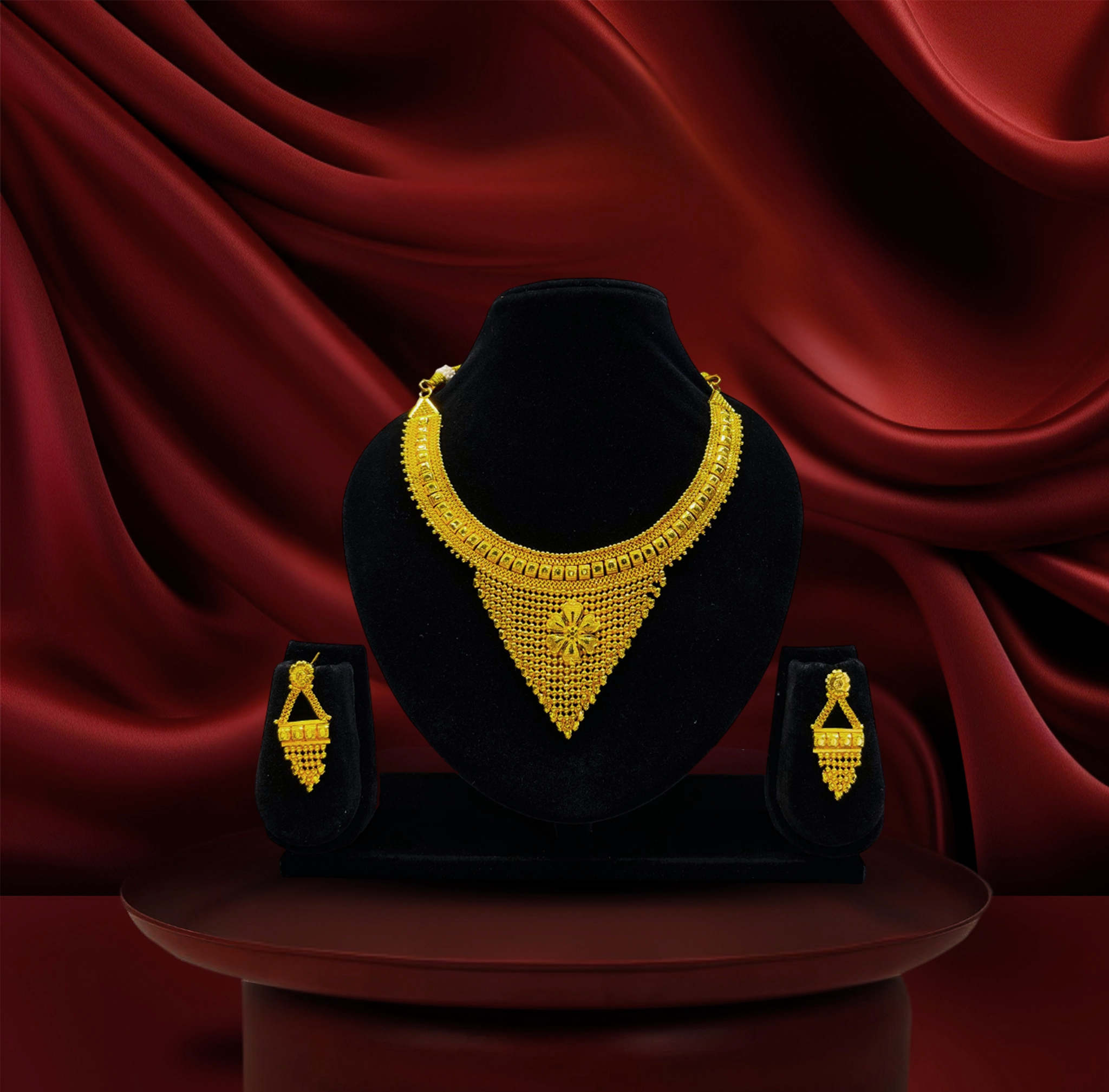 24k gold-plated -traditional bridal triangle pendant necklace set with designer earrings