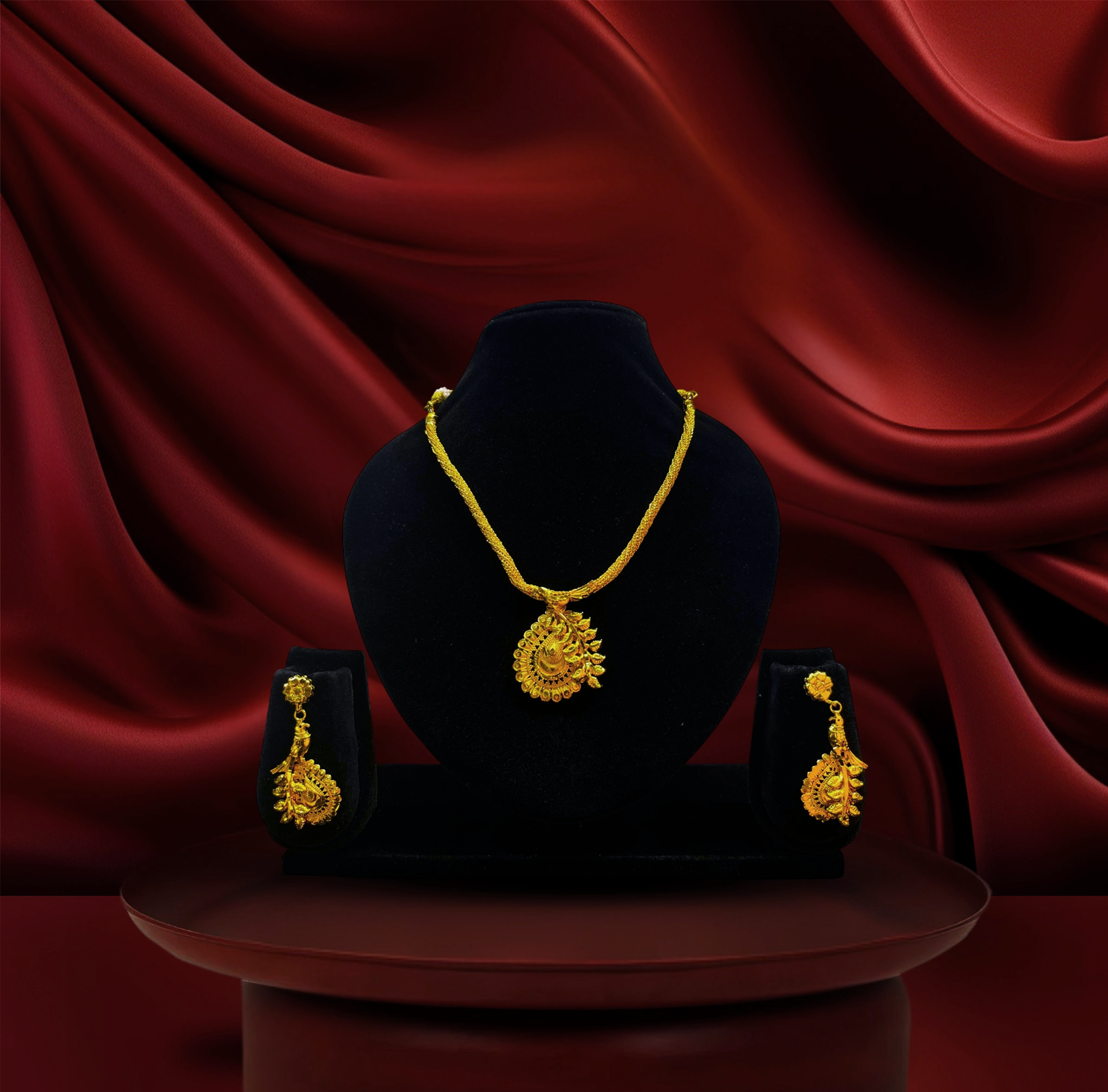 24k gold-plated - peacock bird motif pendant necklace set with matching earrings