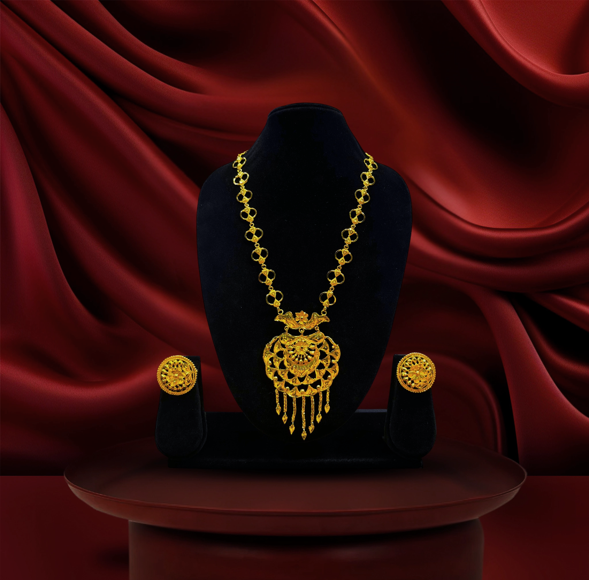 24k gold-plated - traditional drop pendant necklace set with intricate handcrafted detailing & matching earrings