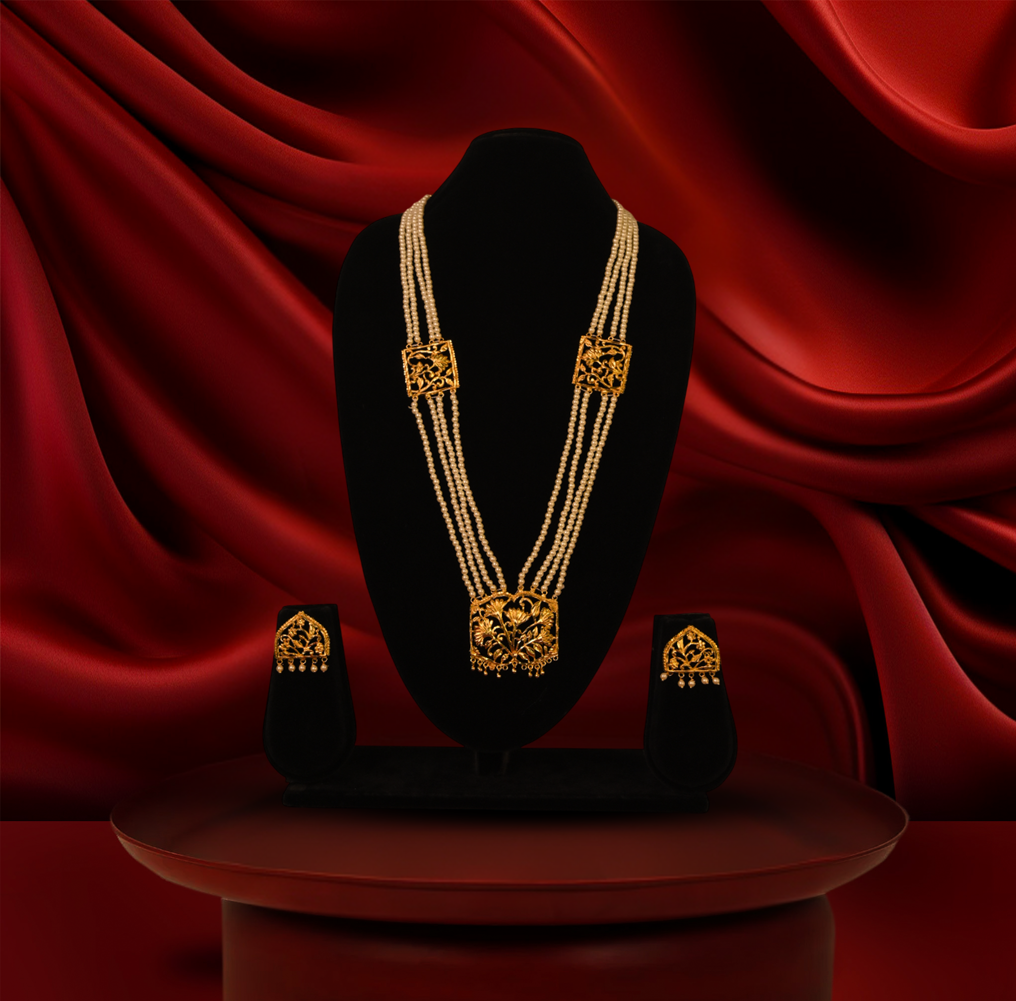 24k gold-plated - ethnic nakshi pearl necklace set with traditional finish with earrings