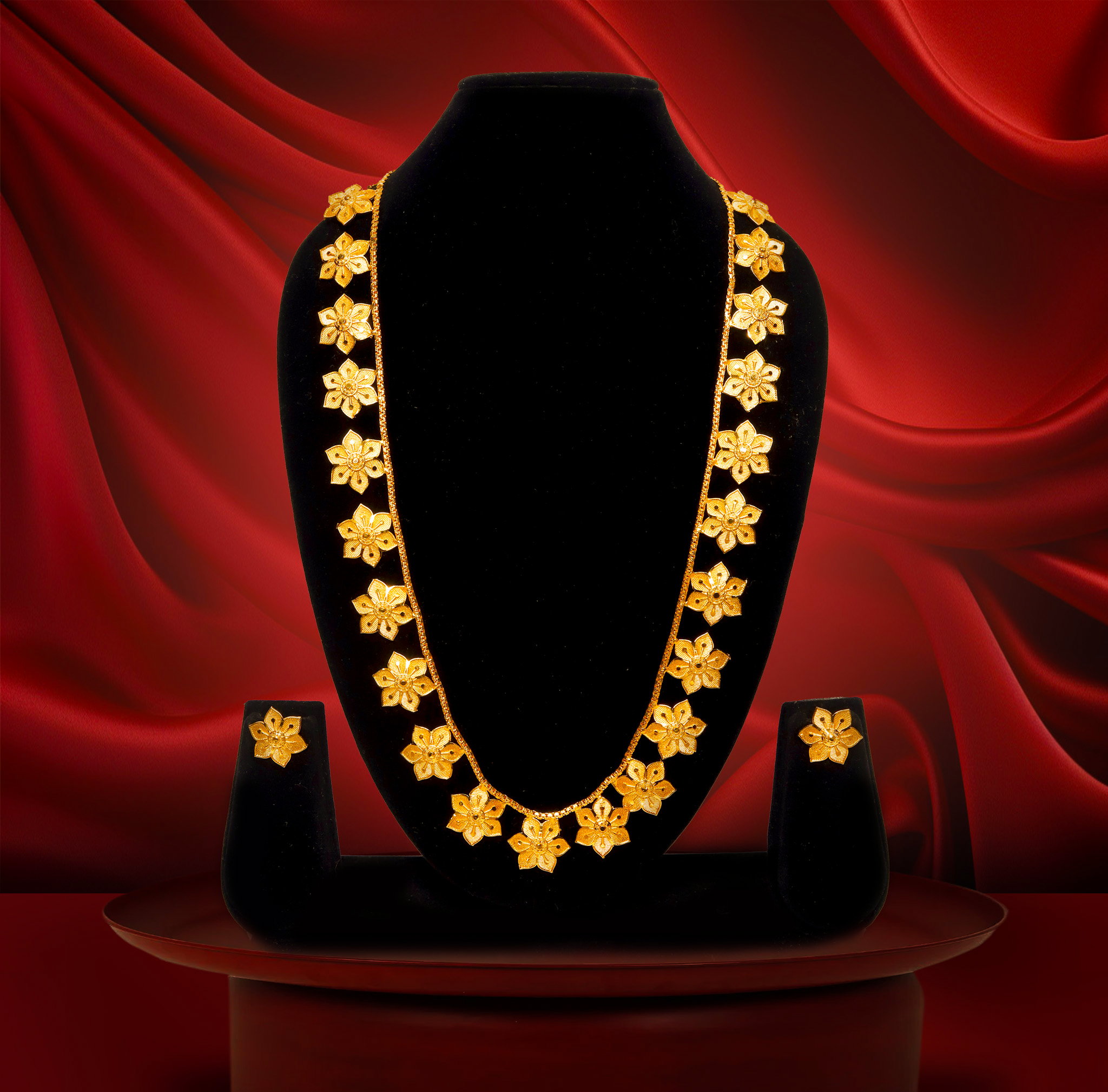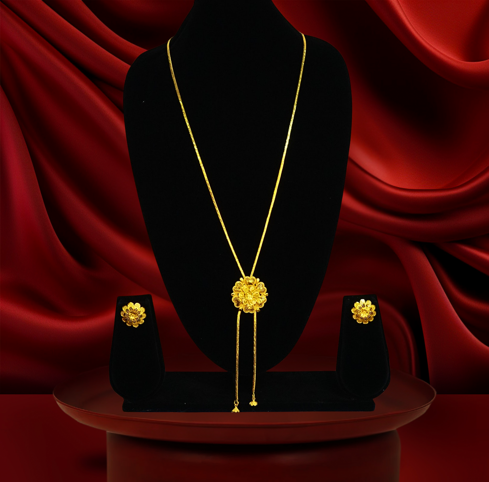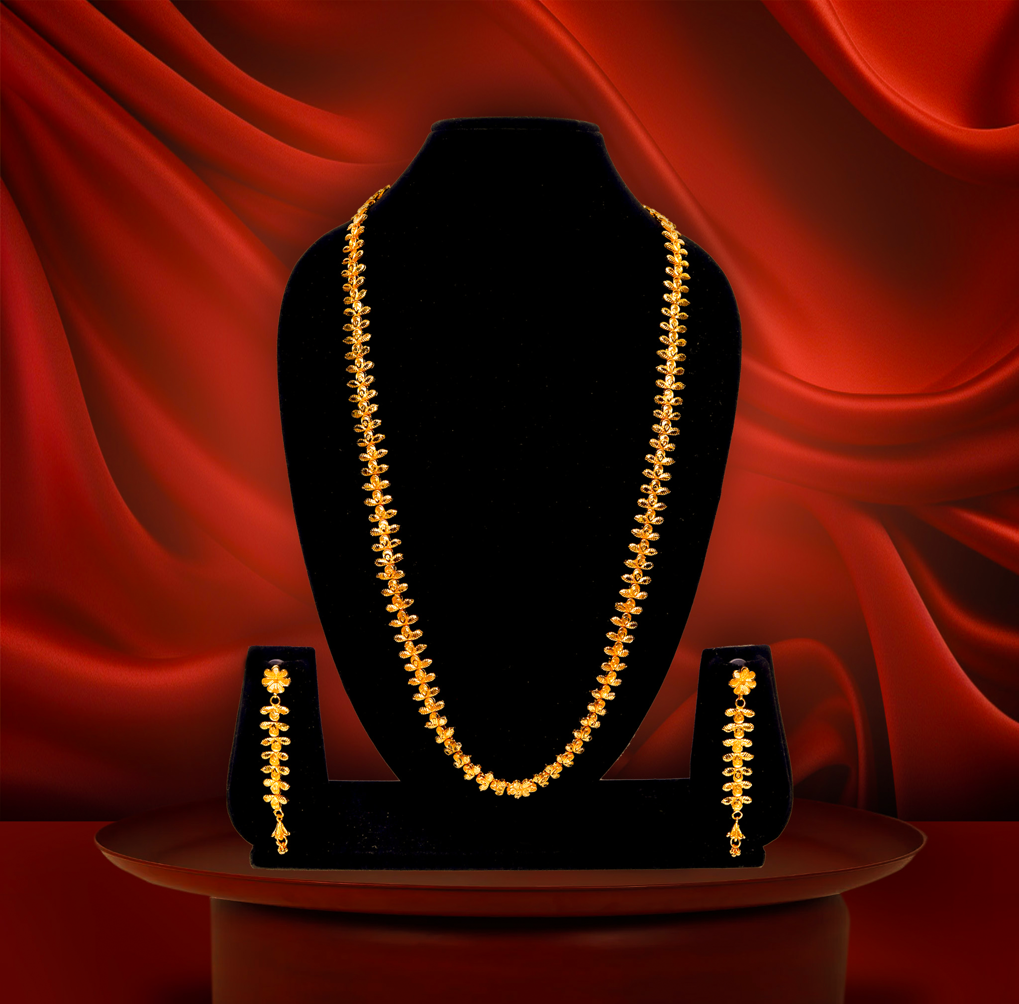 24k gold-plated leaf motif long u haar set – necklace & earrings