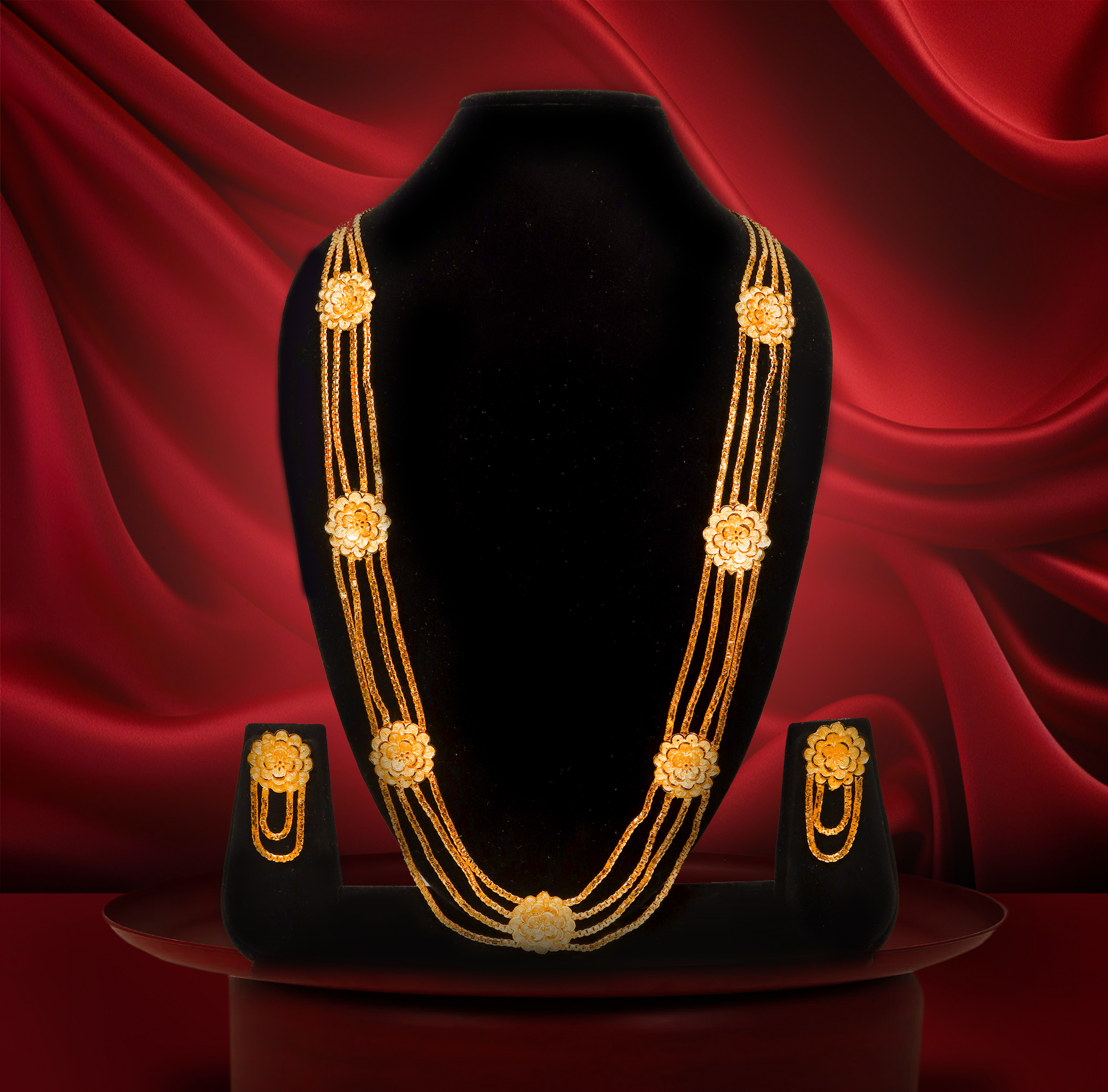 Rs. 2,699.00Rs. 2,699.00 Rs. 3,599.00/Unleash your inner queen with our handcrafted 24K Gold-Plated Multi-Layer Floral U Haar Necklace Set. This luxurious bridal jewelry set inspired by traditional Indian craftsmanship, a...