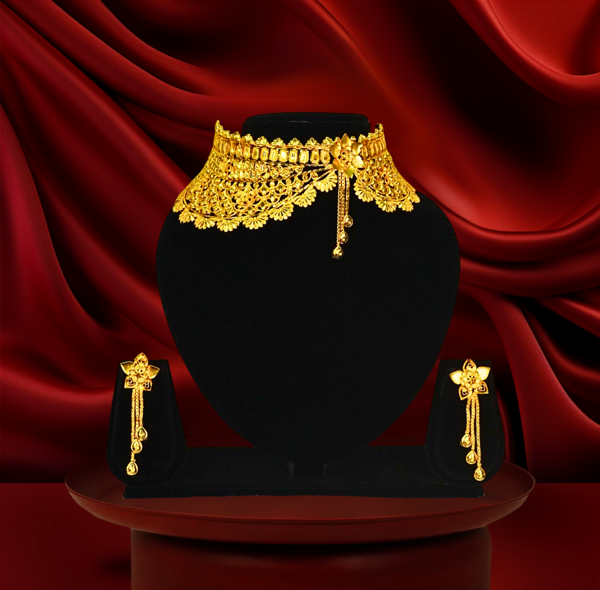 24k gold-plated floral choker necklace set for women – wedding & party wear