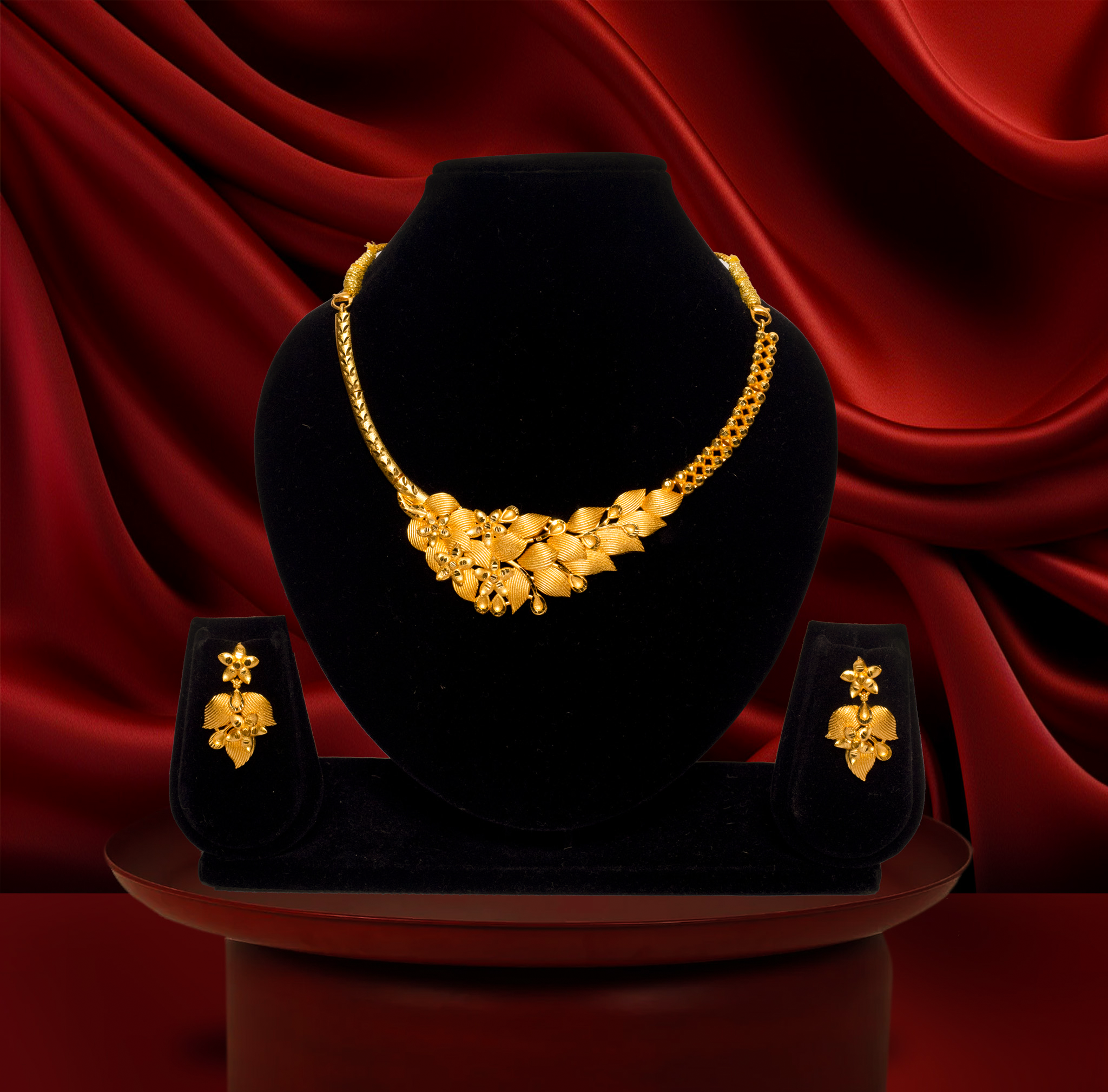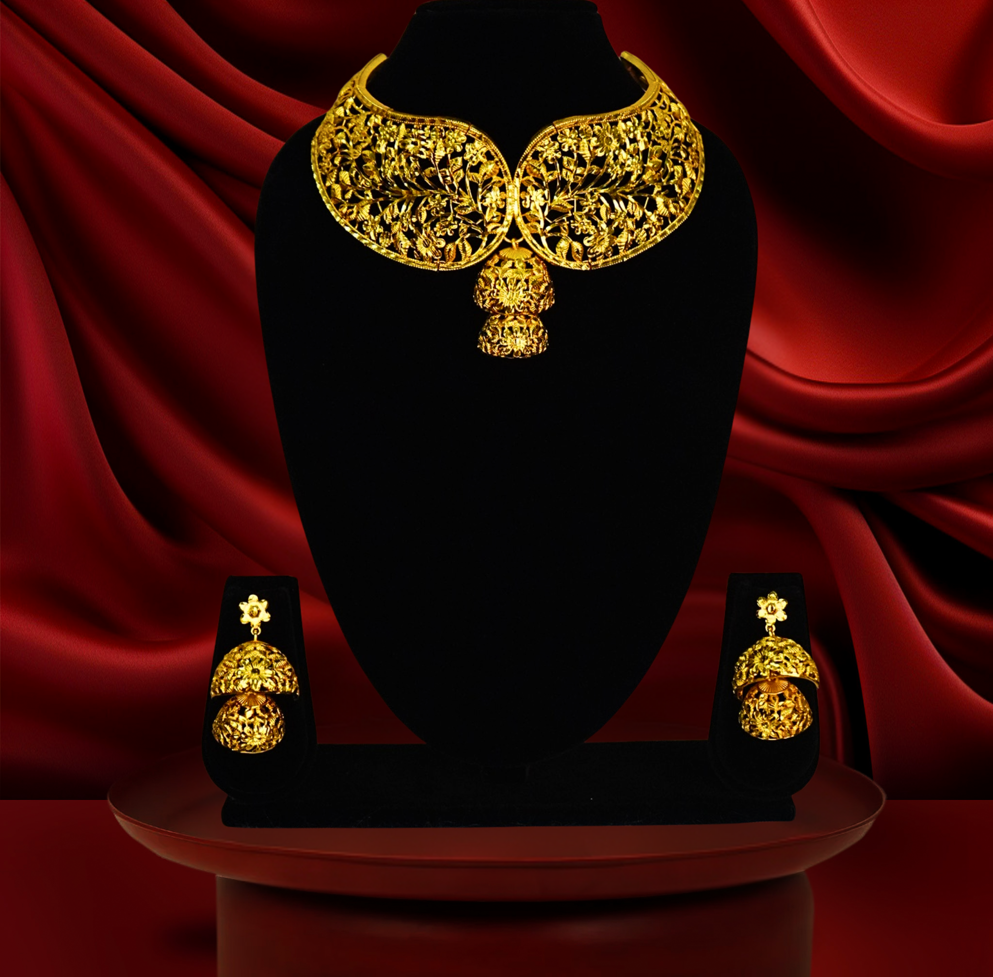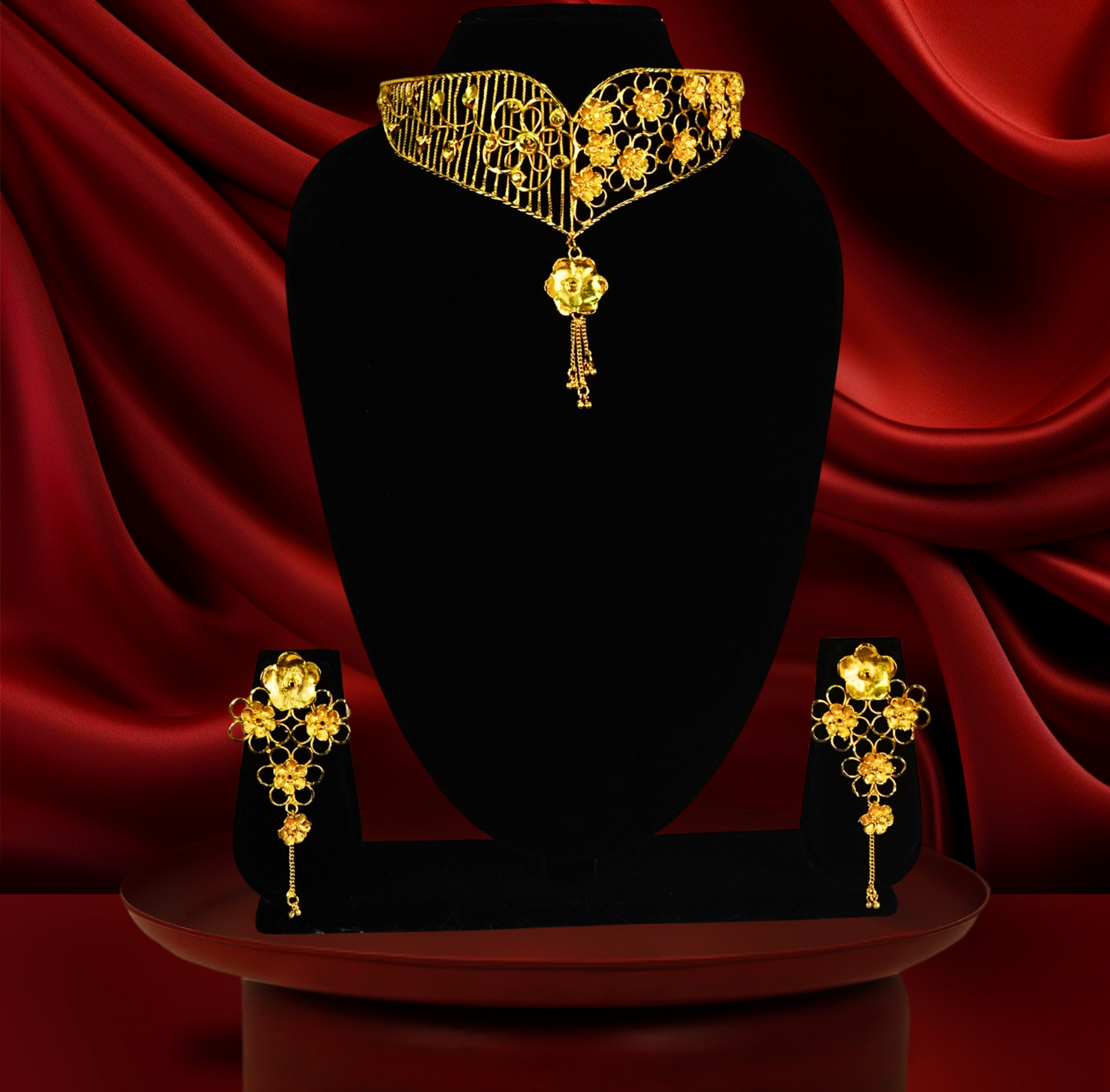Floral chatai necklace set – 24k gold-plated bridal choker with earrings