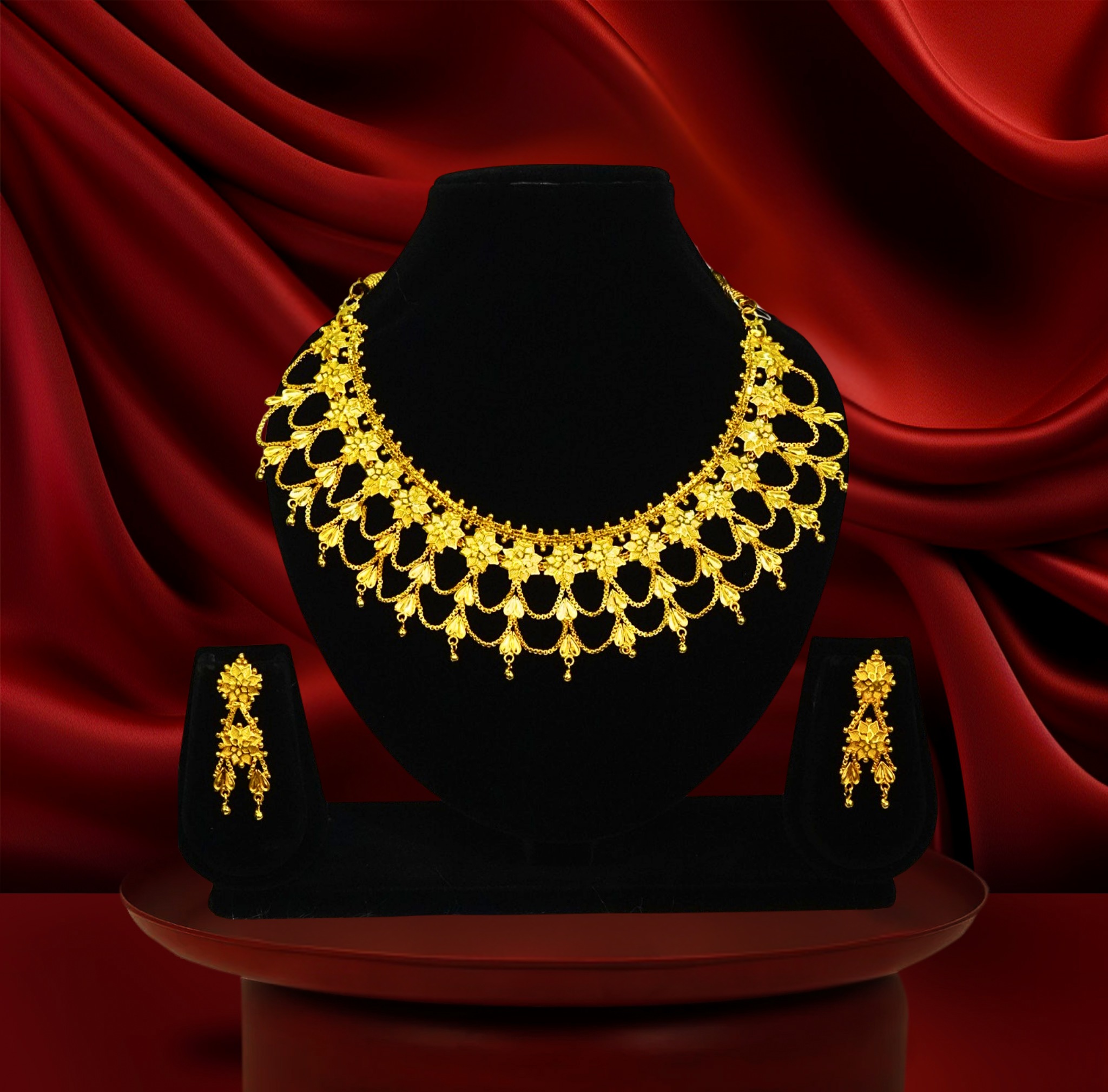 24k gold-plated floral choker set with long drop earrings – traditional bridal jewelry