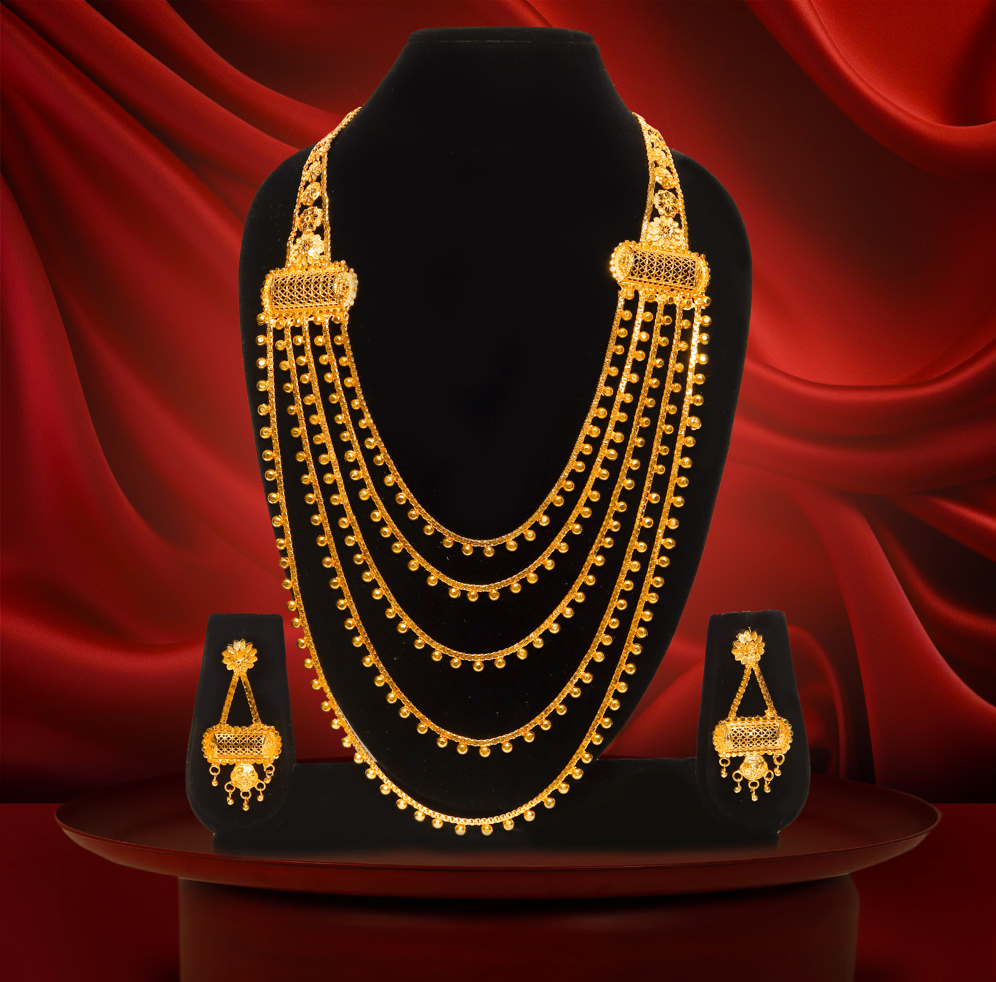 Rs. 3,499.00Rs. 3,499.00 Rs. 4,599.00/Unleash your inner queen with our handcrafted 24K Gold-Plated Multi-Layered Traditional Bridal long lohori Set. This luxurious bridal jewelry set inspired by traditional Indian craftsmanship, a true...