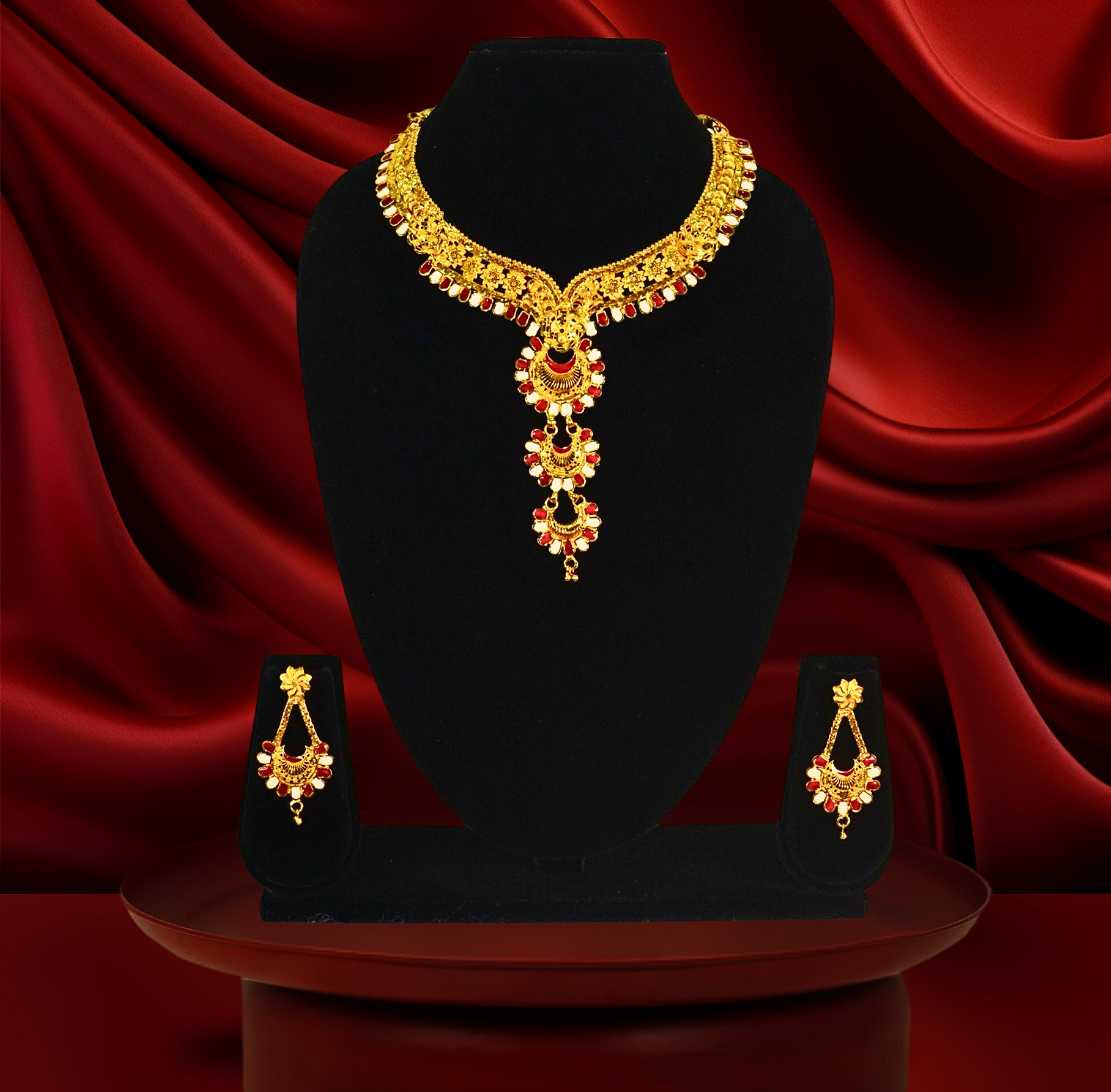 Unleash your inner queen with our handcrafted 24K Gold-Plated Traditional Chatai Necklace Set with Earrings. This luxurious  inspired by traditional Indian craftsmanship, a true celebration of timeless...
