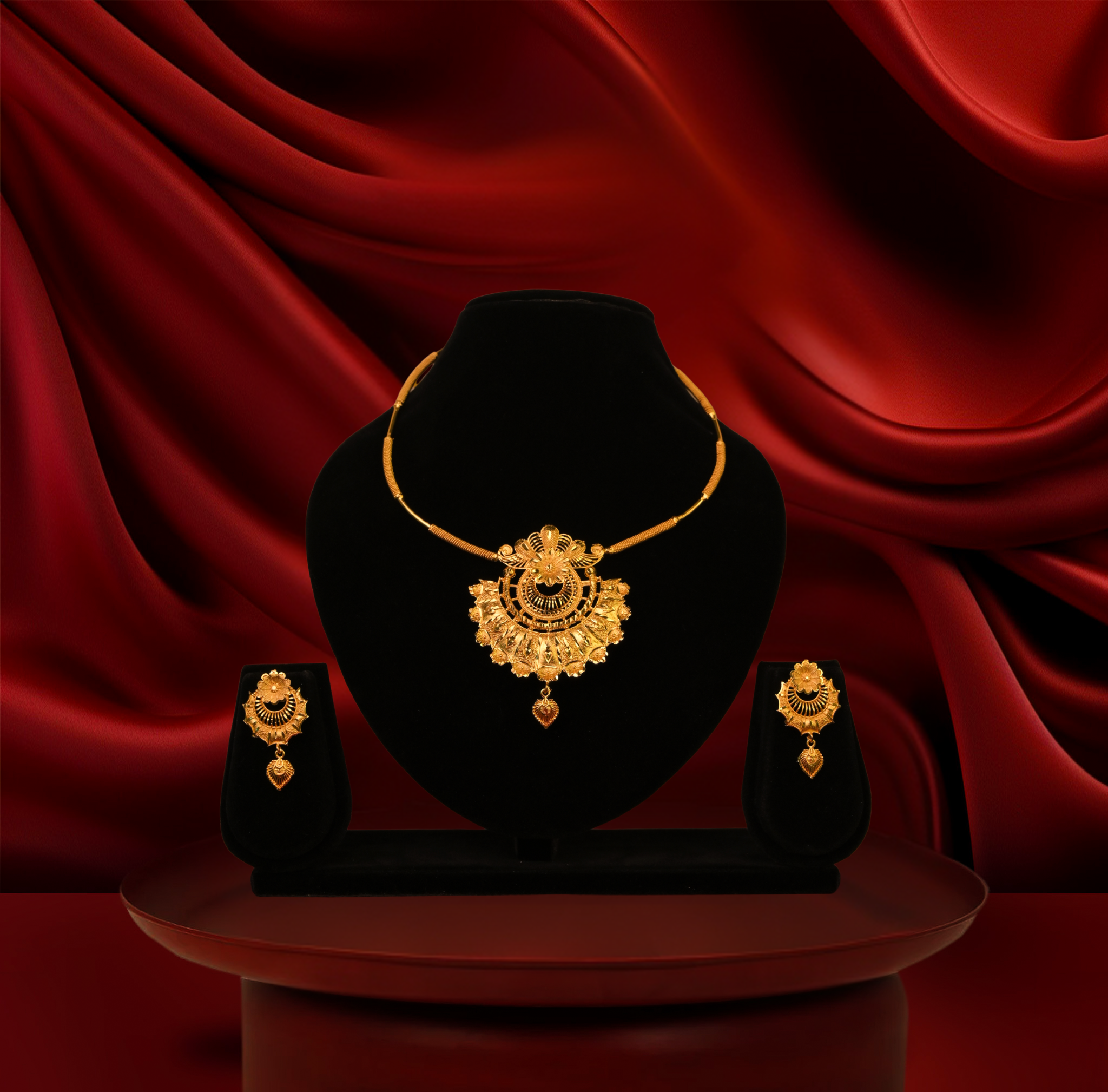 24k gold-plated bridal chatai design floral necklace set