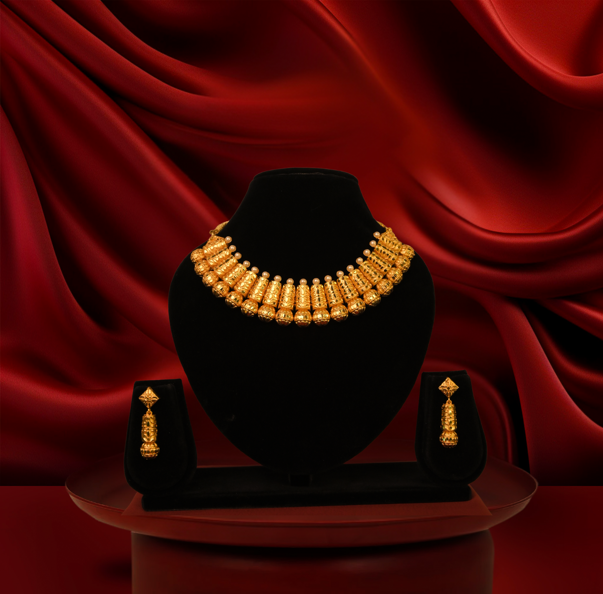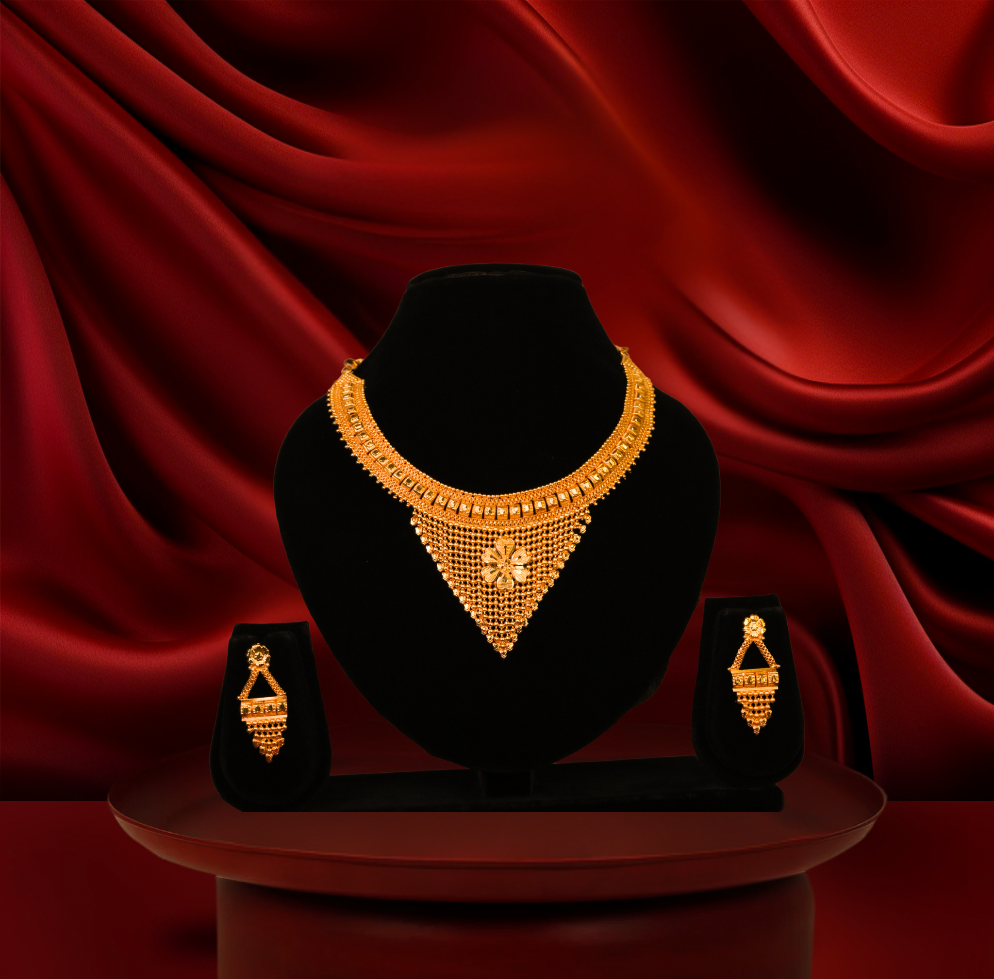 24k gold-plated -royal tri-net gold plated necklace set