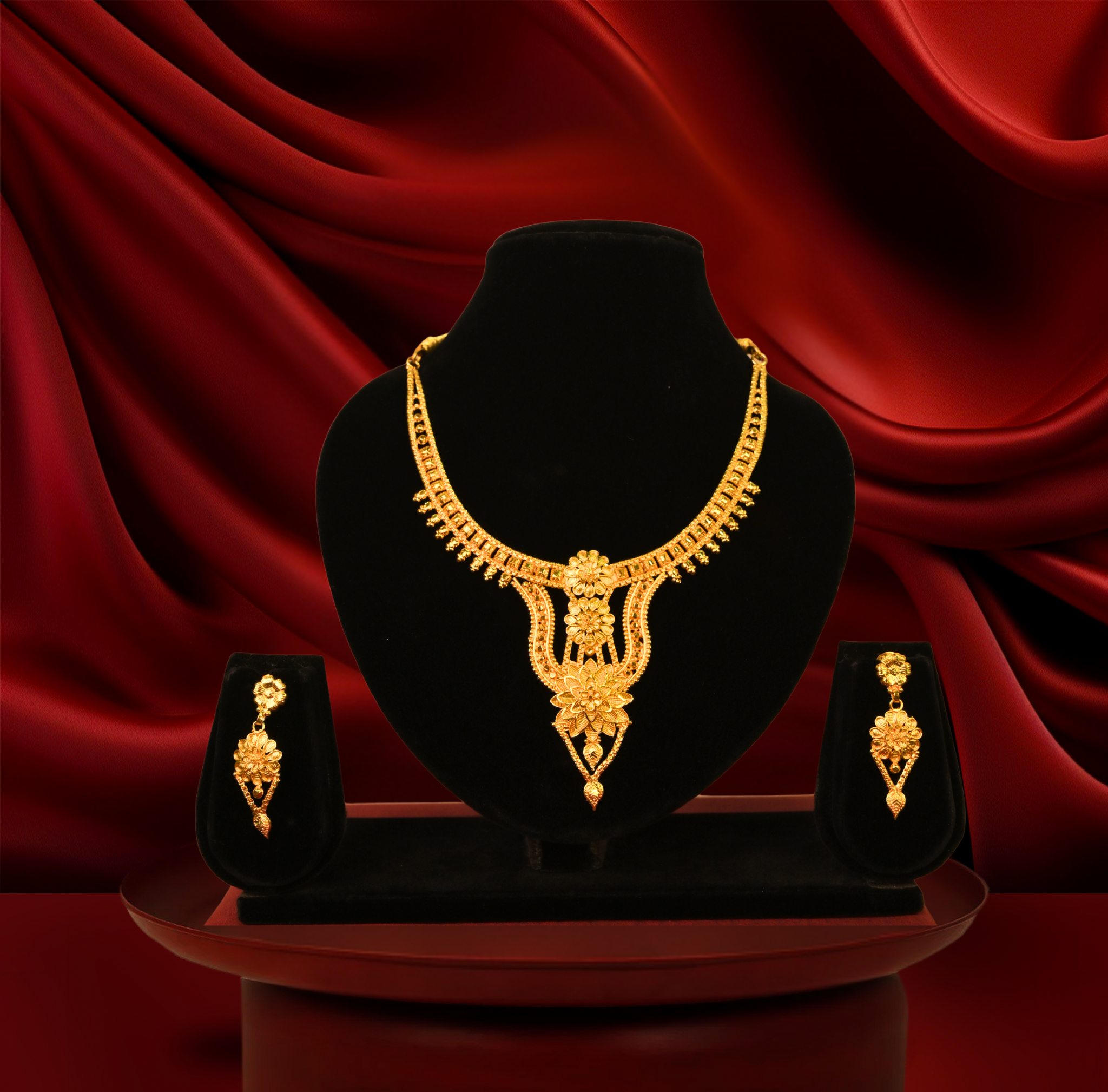24k gold-plated bridal special premium floral necklace set with floral detailing & matching earrings (copy)