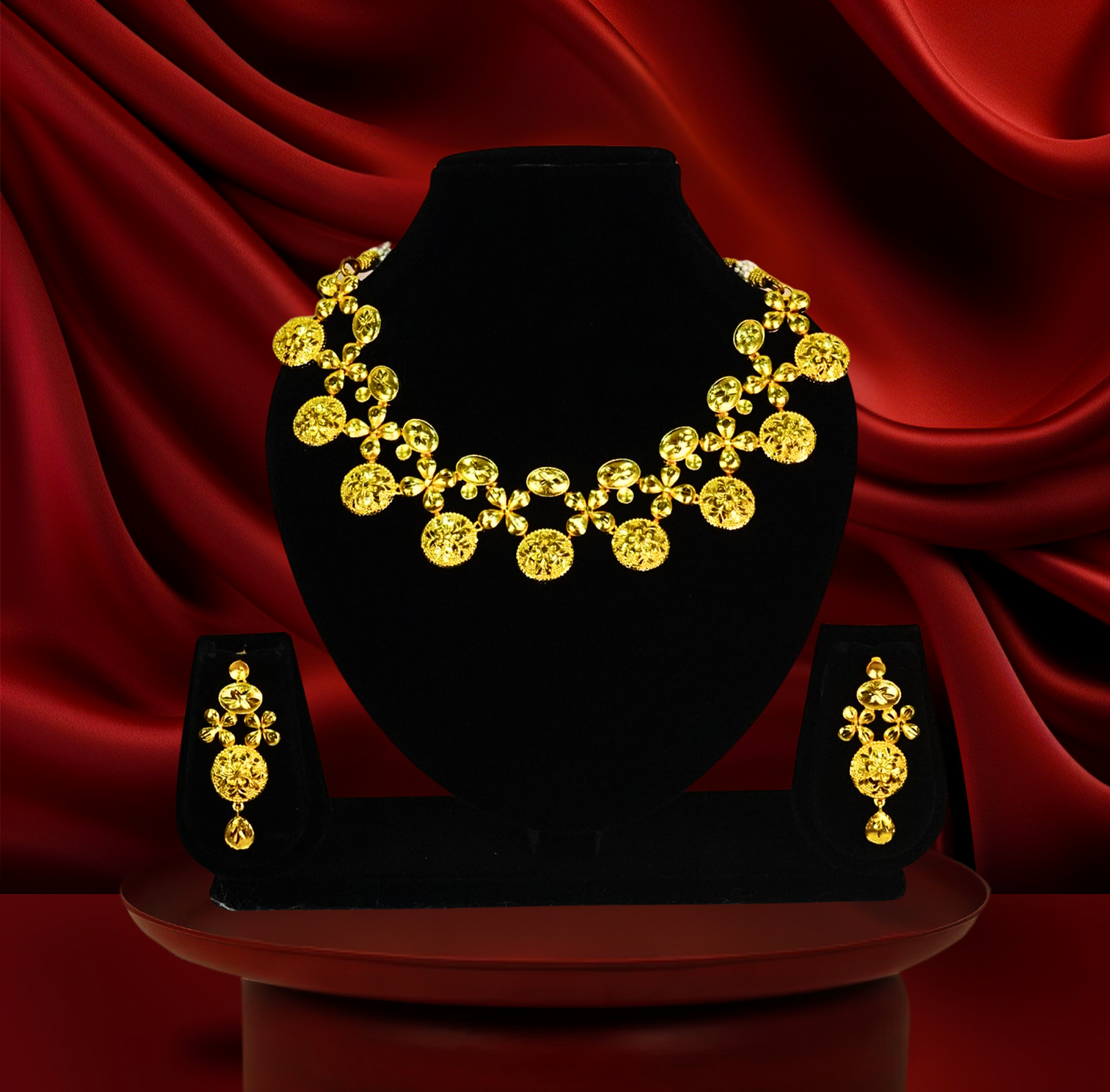 24k gold-plated bridal chatai design floral necklace set