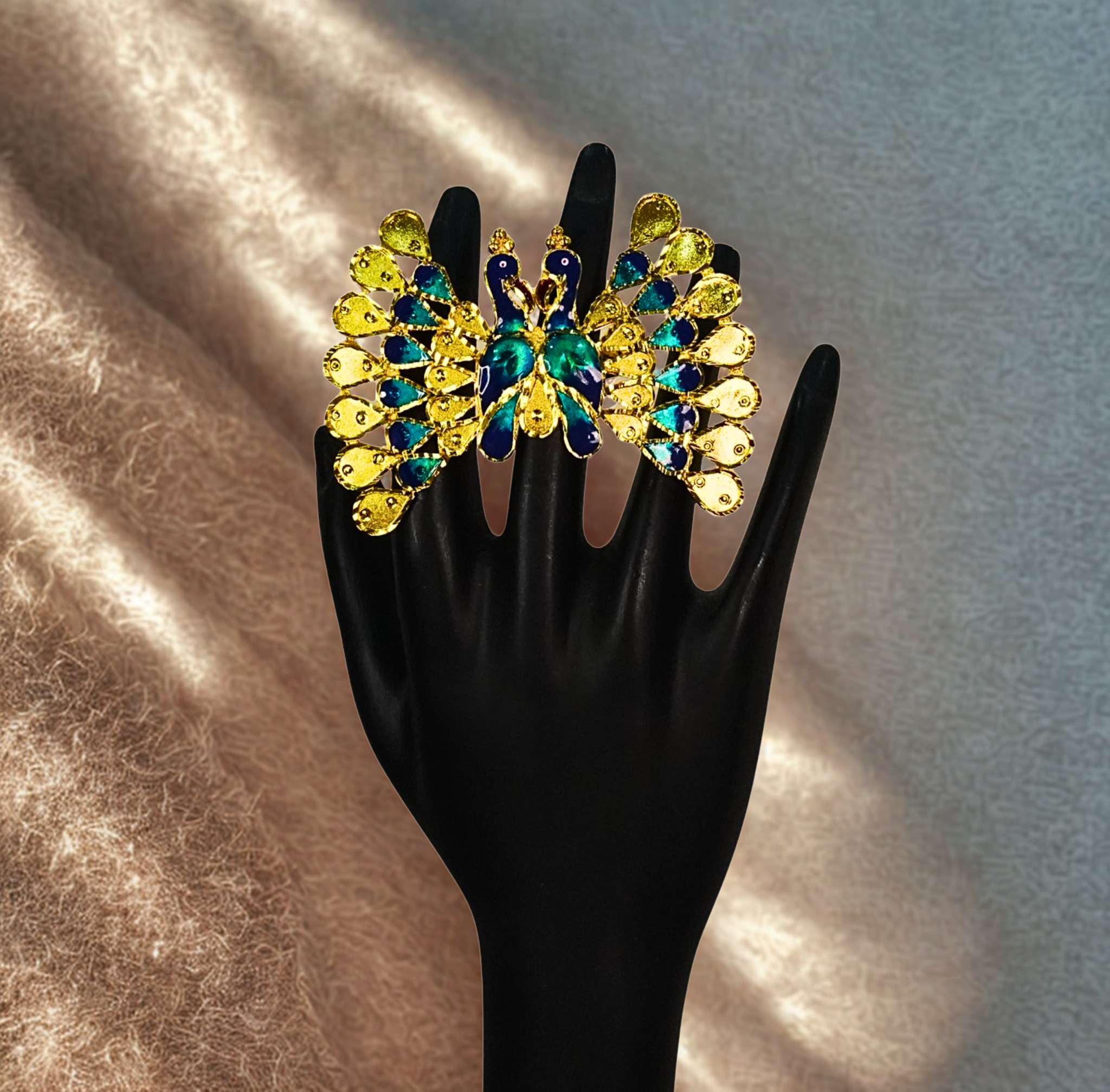 24k gold-plated - 3d peacock motif adjustable finger ring
