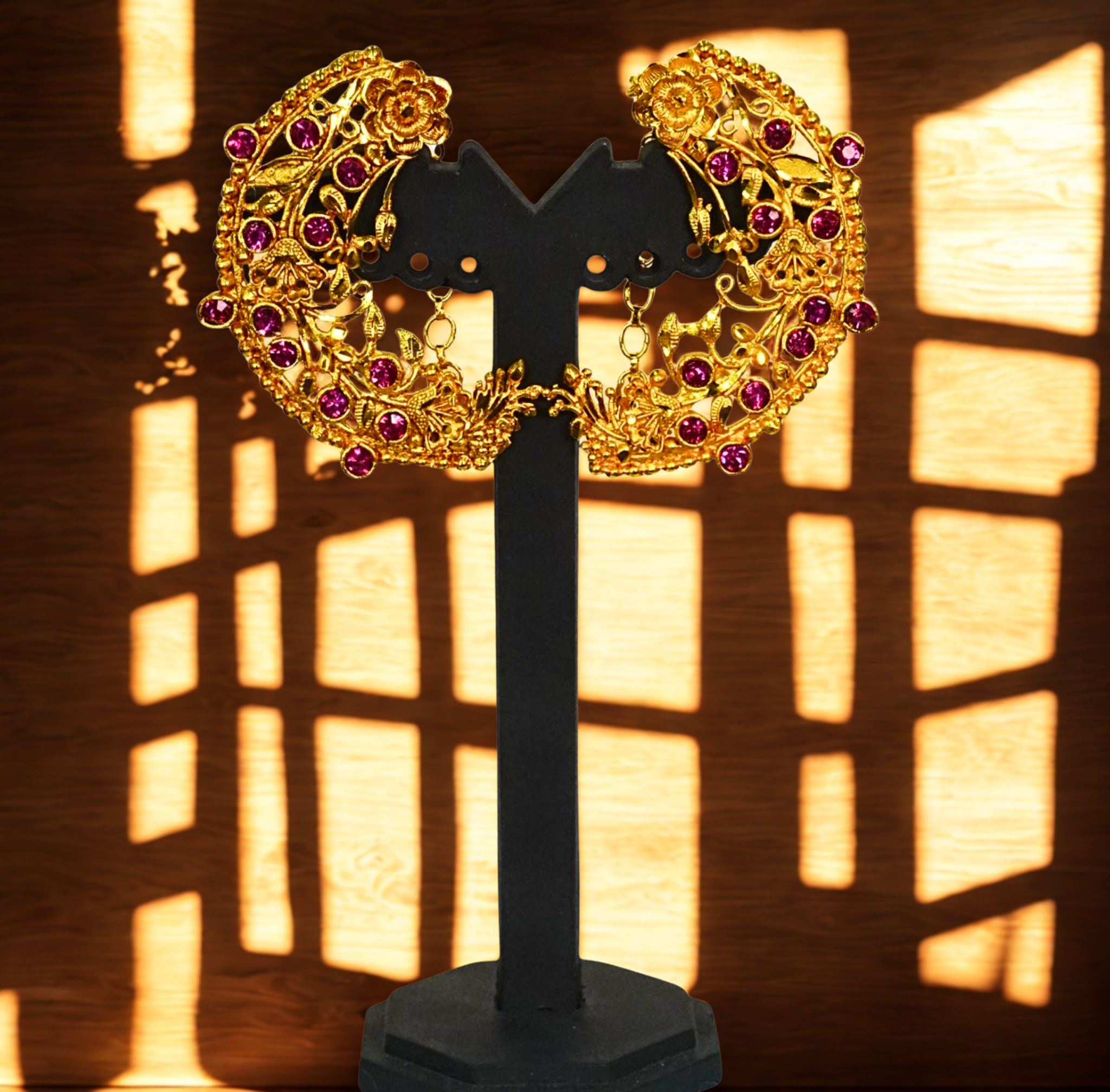 24k gold-plated - floral crescent full kaan with ruby stone motif
