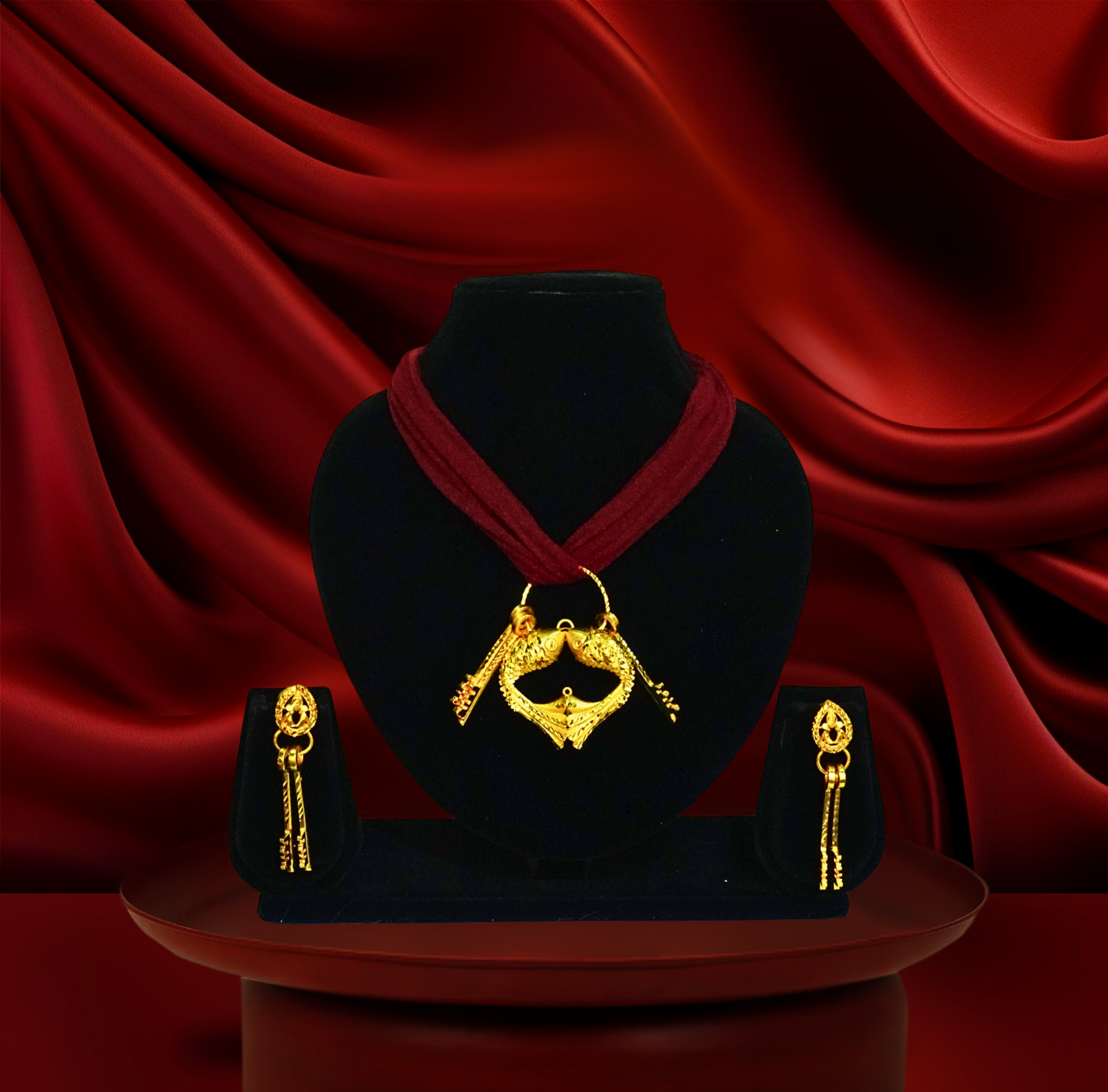 24k gold-plated double fish motif pendant set – symbol of prosperity & harmony