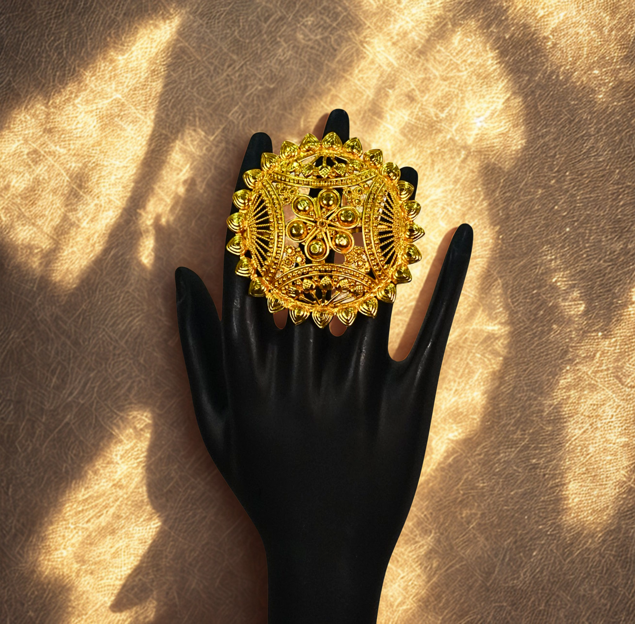 24k gold-plated - traditional chakra motif oversized adjustable ring
