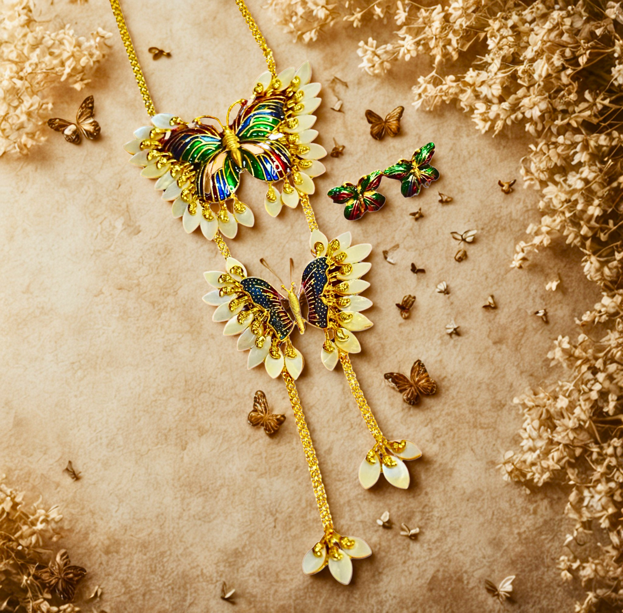 24k gold-plated enchanted butterfly dual pendant shell tie chain set