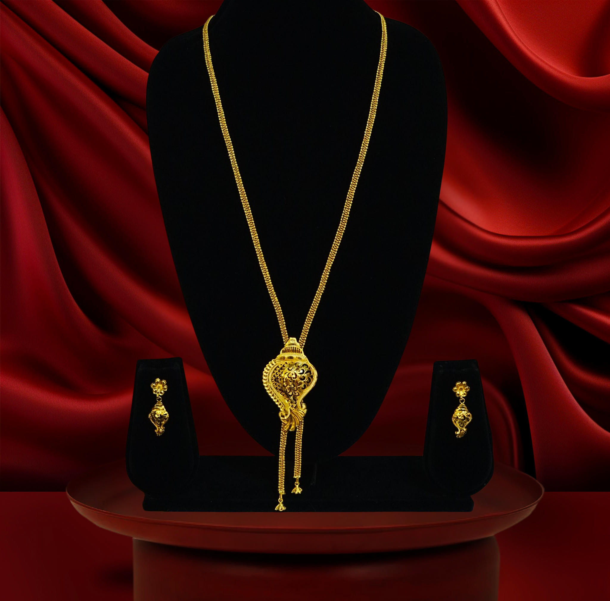 24k gold-plated shankha motif tie chain – elegant long pendant set