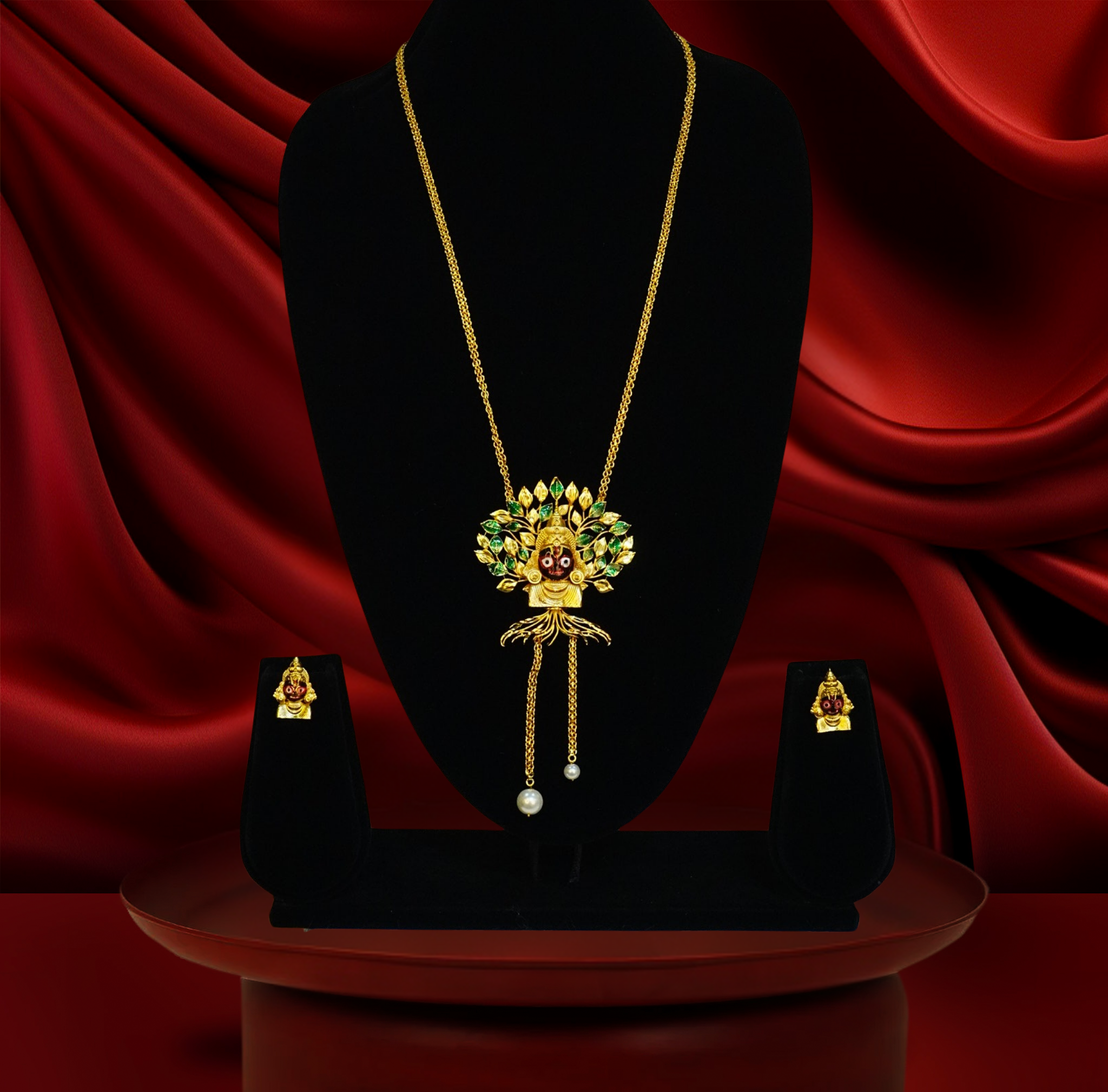 24k gold-plated meenakari lord jagannath tree motif tie chain – elegant long pendant set