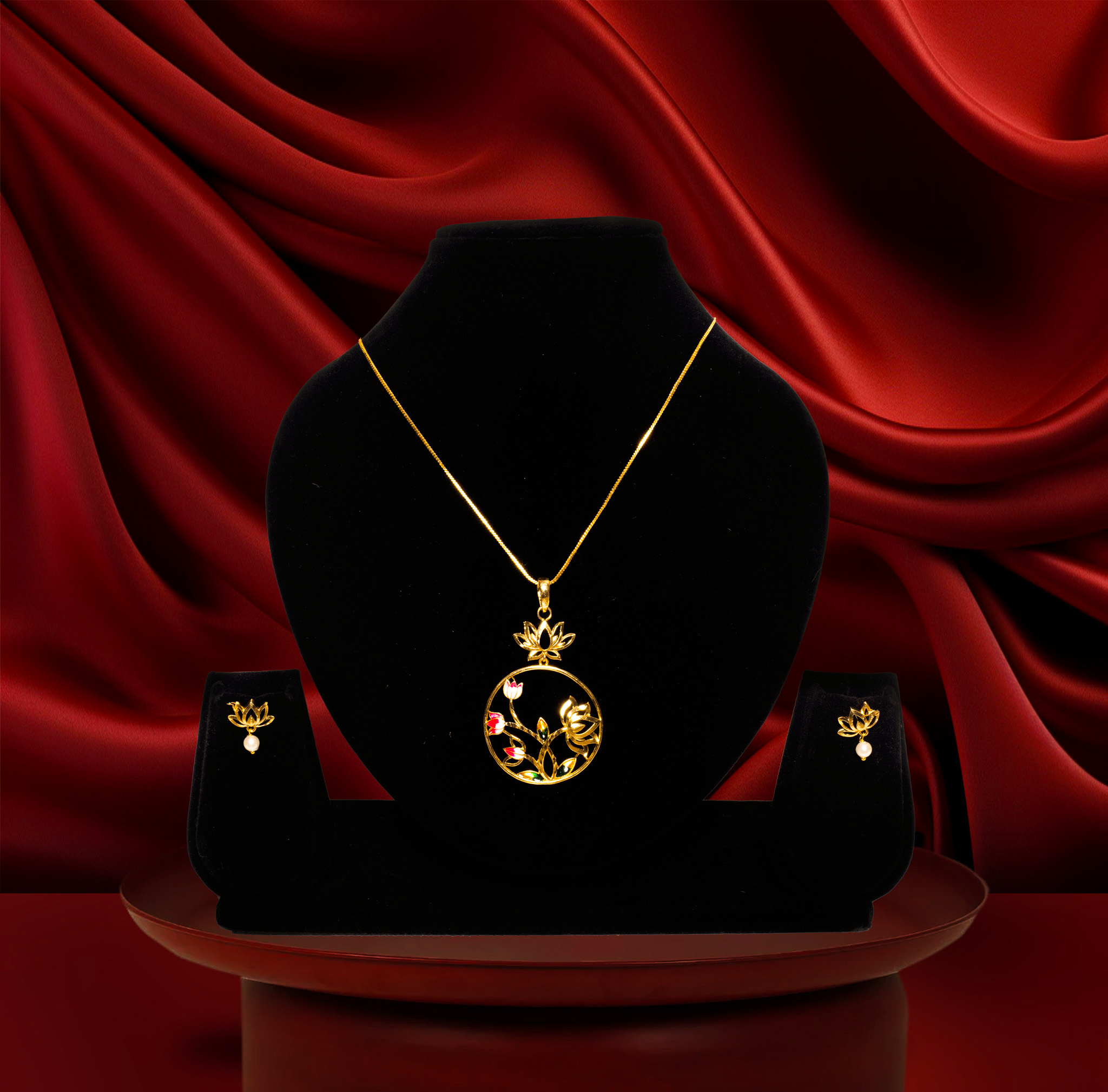 24k gold-plated lotus bloom pendant set with earrings