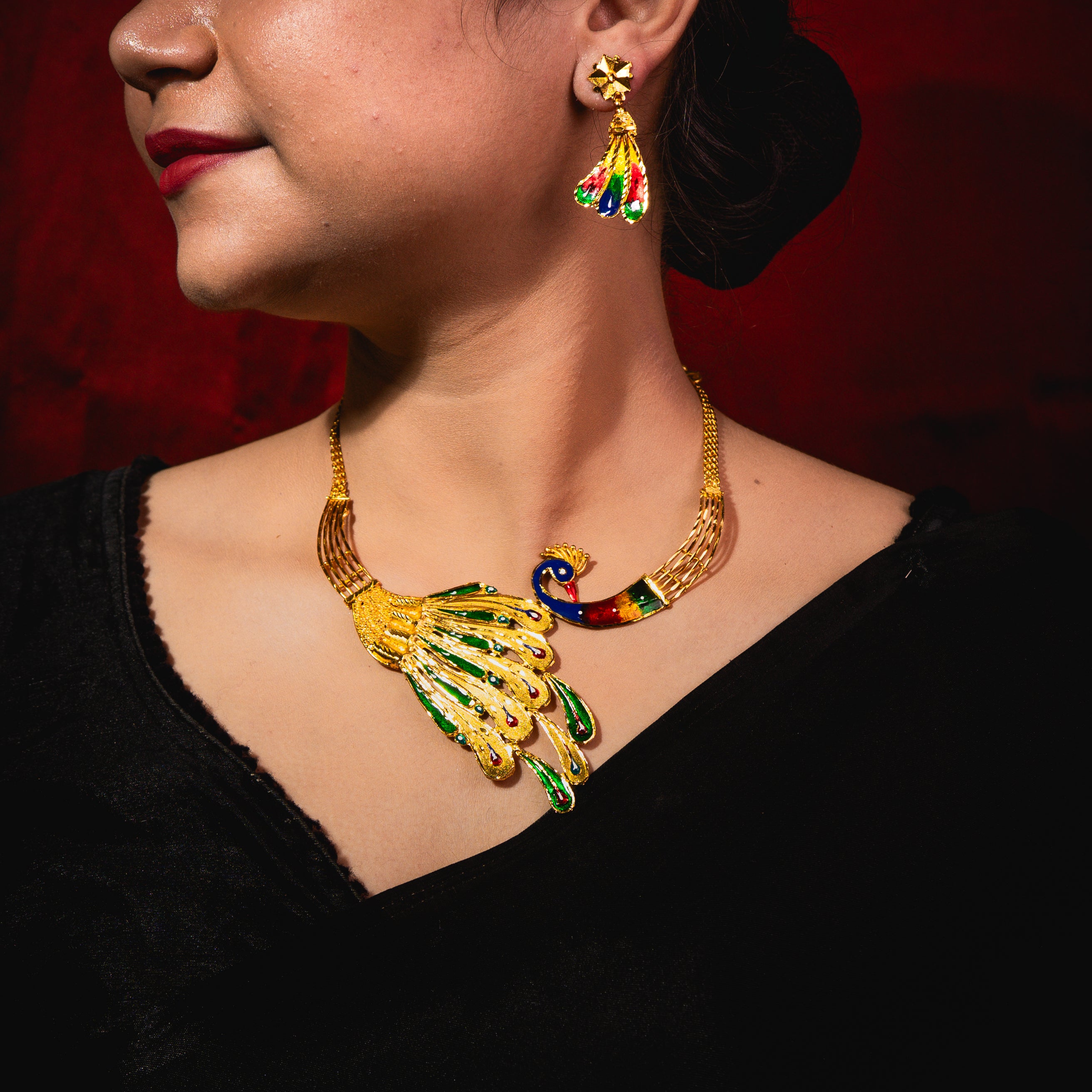 24k gold-plated meenakari peacock necklace set with earrings