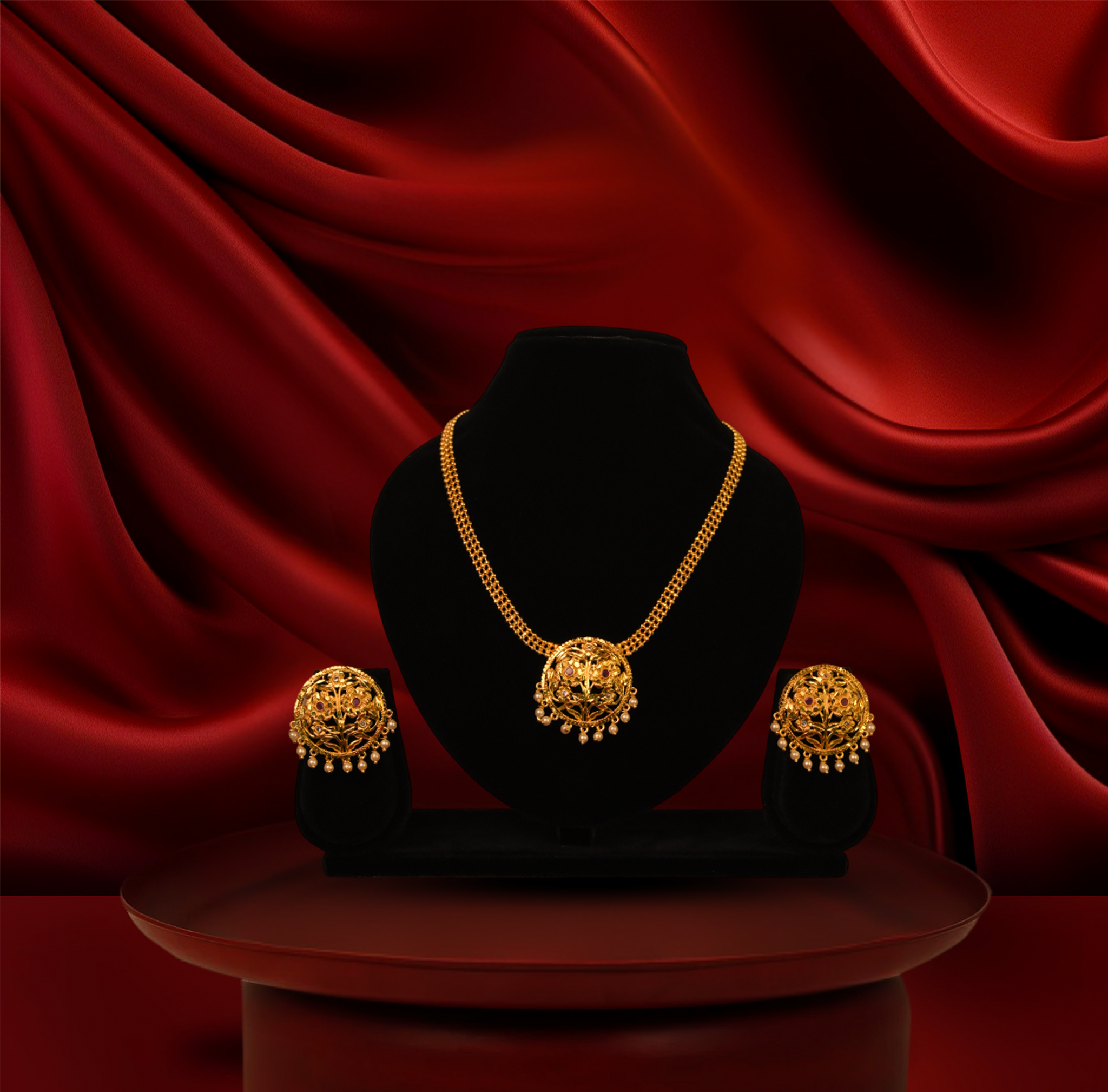 24k gold-plated - traditional nakshi necklace set with earrings – premium costume jewellery