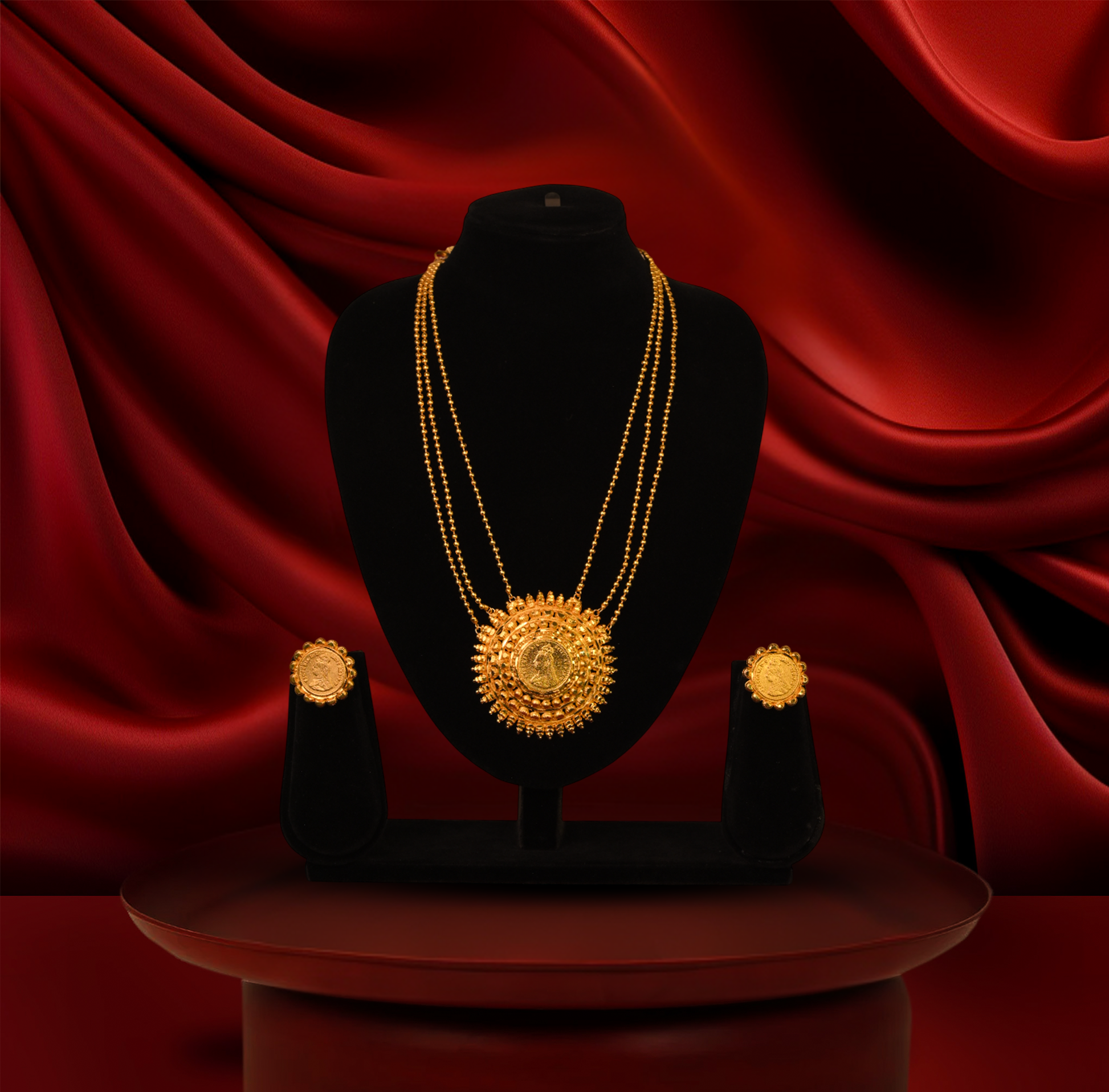 Design: 24K Gold-Plated -Classic Traditional Gold Gini Necklace Set With Earrings